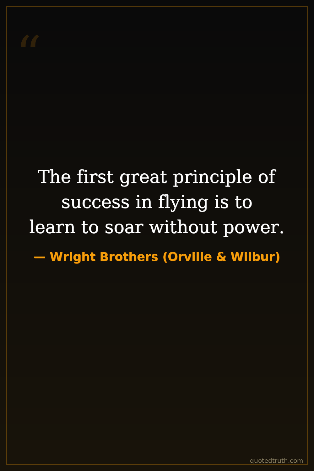 The first great principle of success in flying is to learn to soar without power.