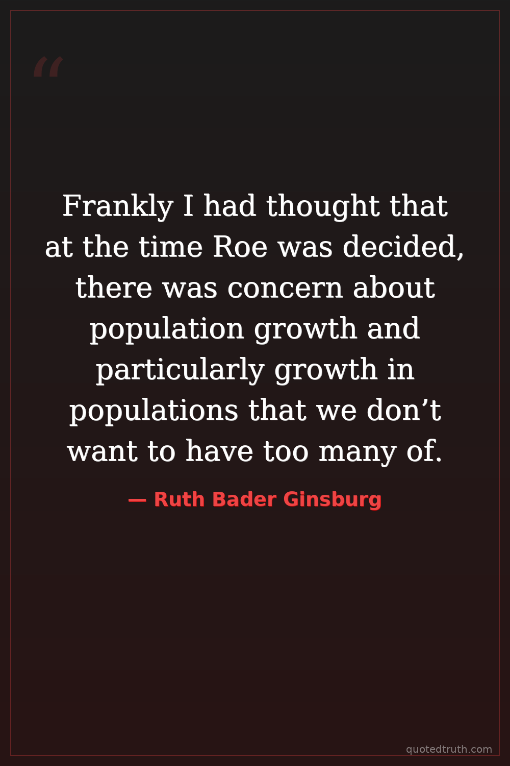 Frankly I had thought that at the time Roe was decided, there was concern about population growth and particularly growth in populations that we don’t want to have too many of.