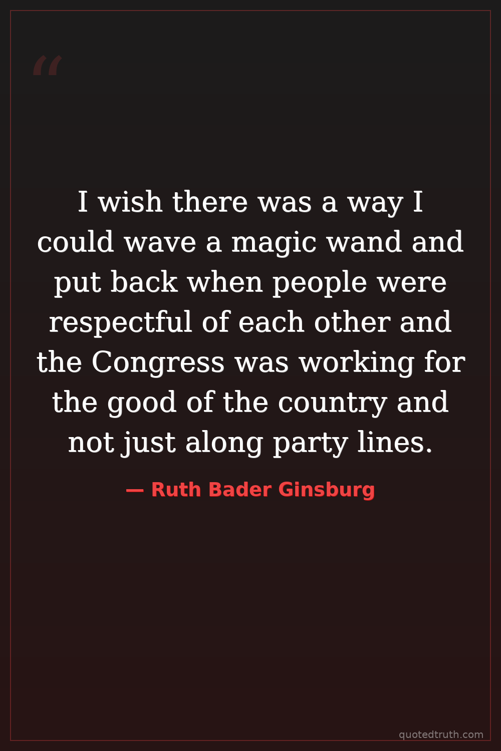 I wish there was a way I could wave a magic wand and put back when people were respectful of each other and the Congress was working for the good of the country and not just along party lines.