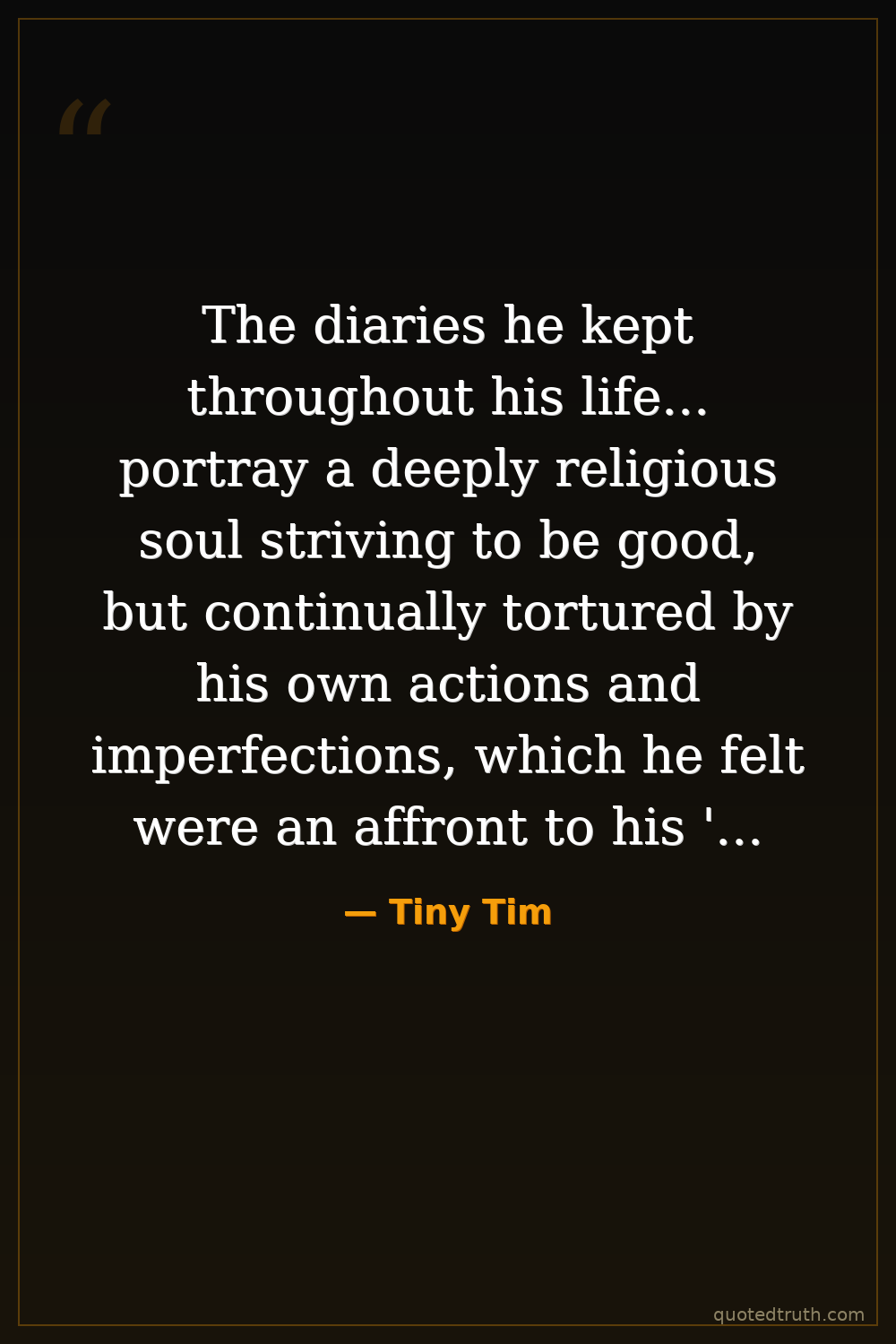 The diaries he kept throughout his life... portray a deeply religious soul striving to be good, but continually tortured by his own actions and imperfections, which he felt were an affront to his 'Lord Jesus Christ' and might lead to his damnation. He wrestled with those issues his entire life.