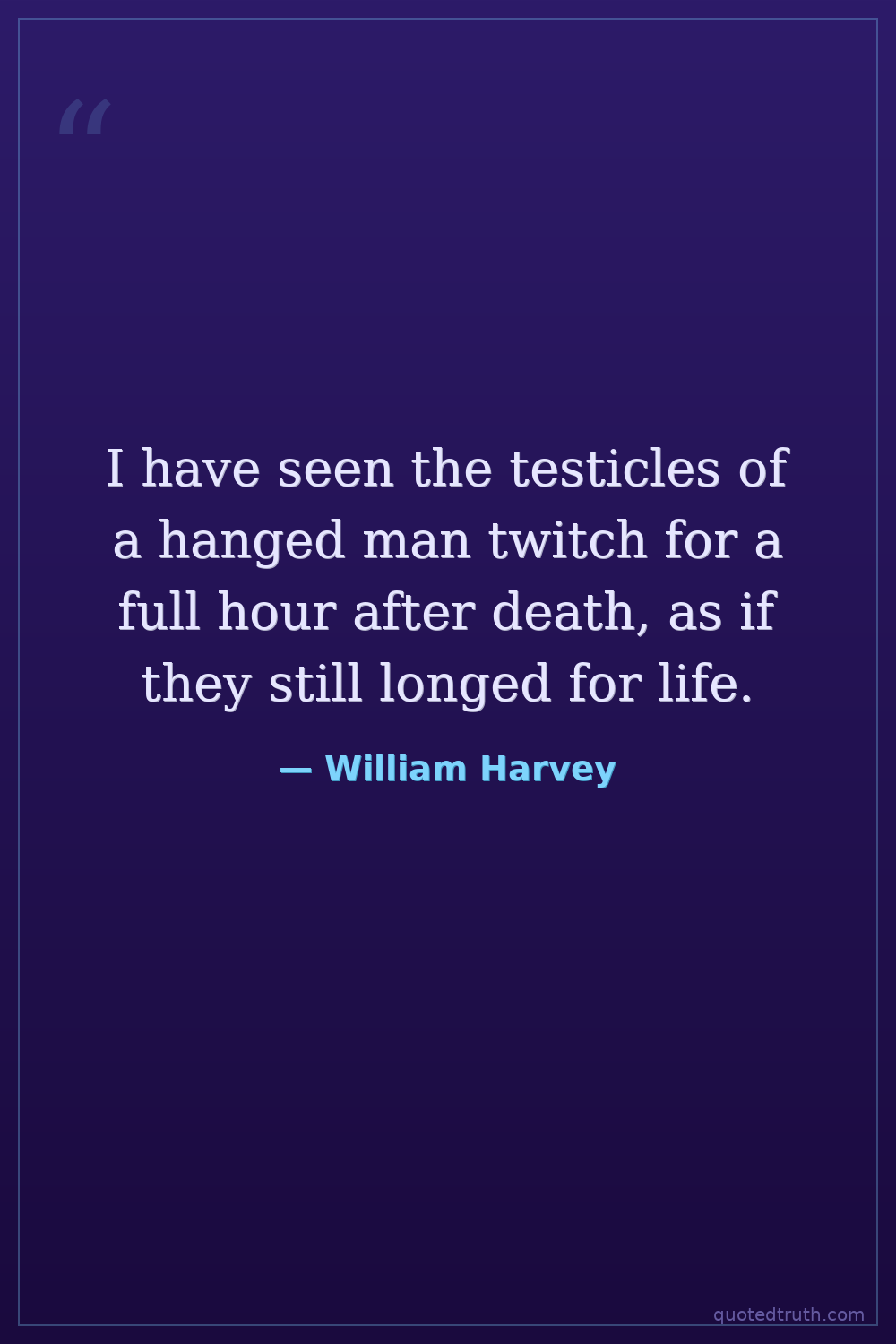 I have seen the testicles of a hanged man twitch for a full hour after death, as if they still longed for life.
