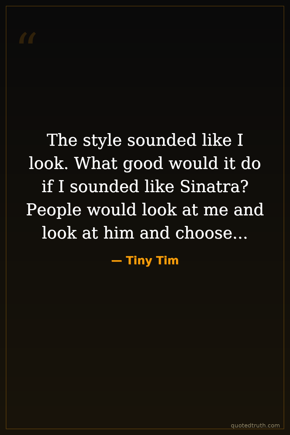 The style sounded like I look. What good would it do if I sounded like Sinatra? People would look at me and look at him and choose...