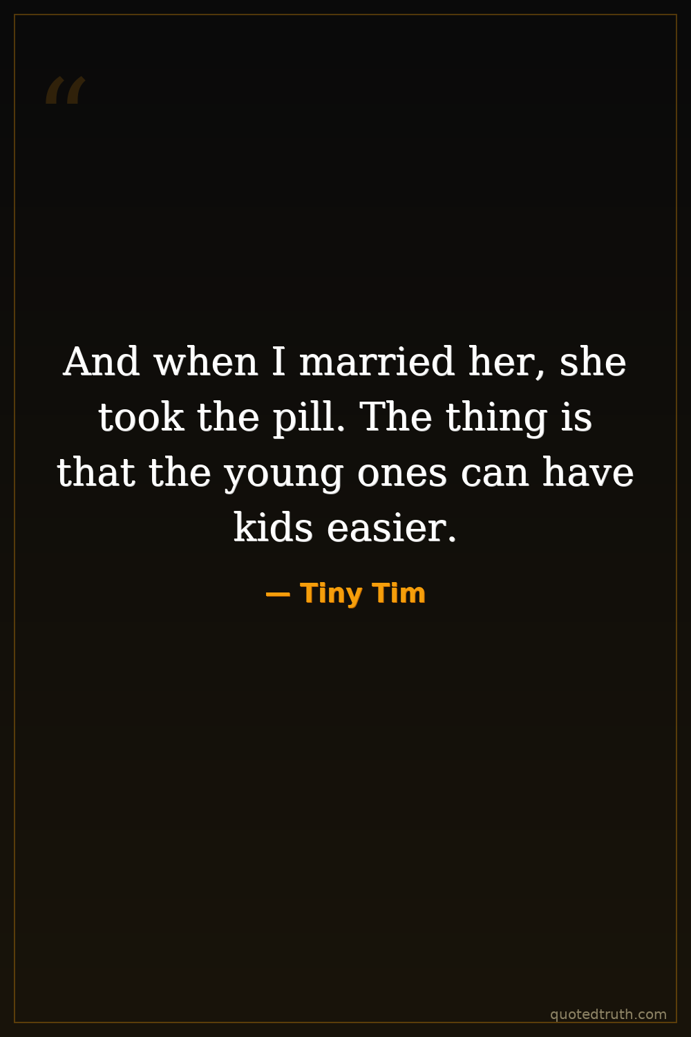 And when I married her, she took the pill. The thing is that the young ones can have kids easier.