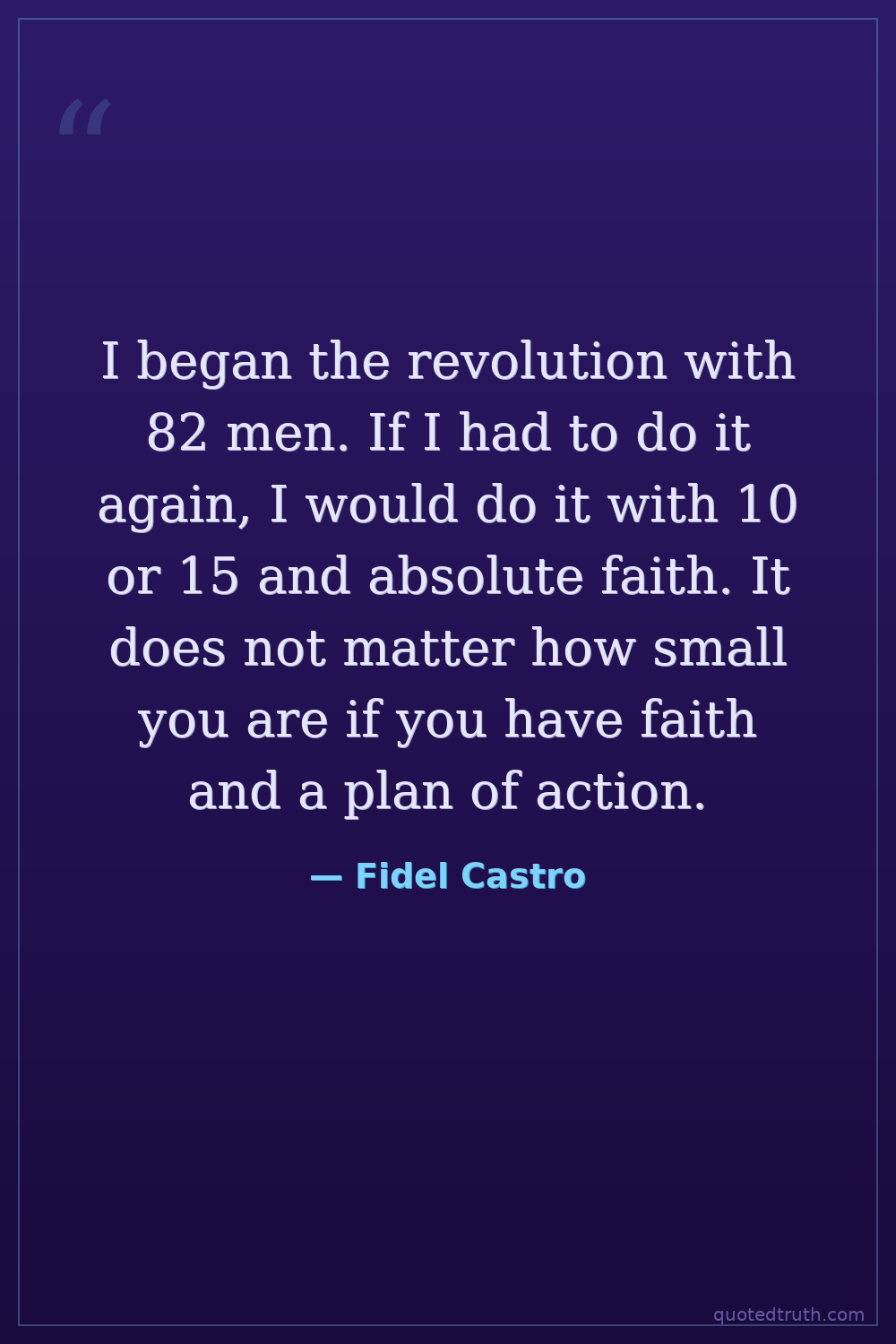 I began the revolution with 82 men. If I had to do it again, I would do it with 10 or 15 and absolute faith. It does not matter how small you are if you have faith and a plan of action.