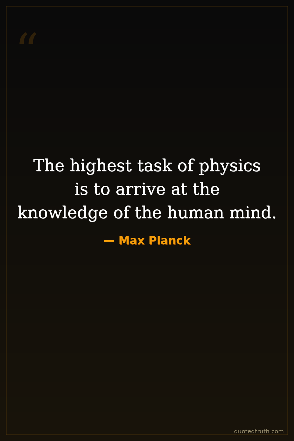 The highest task of physics is to arrive at the knowledge of the human mind.