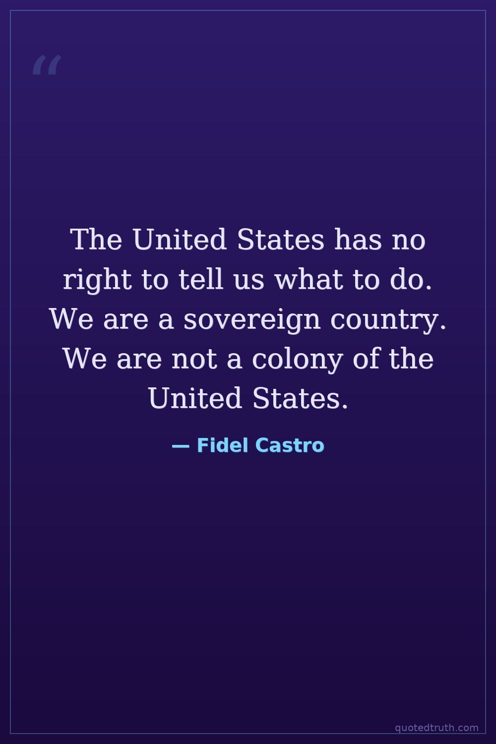 The United States has no right to tell us what to do. We are a sovereign country. We are not a colony of the United States.
