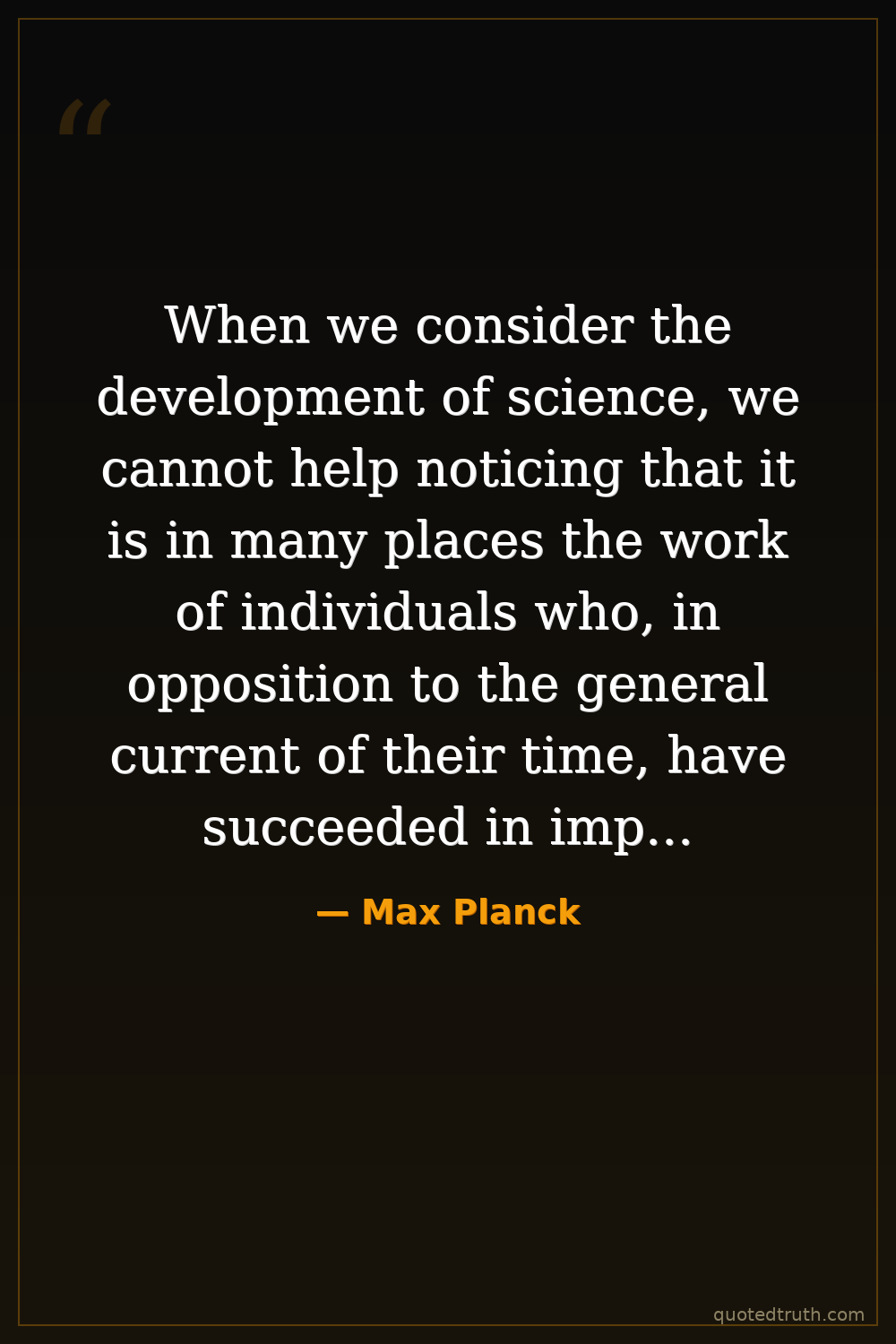 When we consider the development of science, we cannot help noticing that it is in many places the work of individuals who, in opposition to the general current of their time, have succeeded in imposing their views on the scientific world. — Max Planck Modern Quantum theory