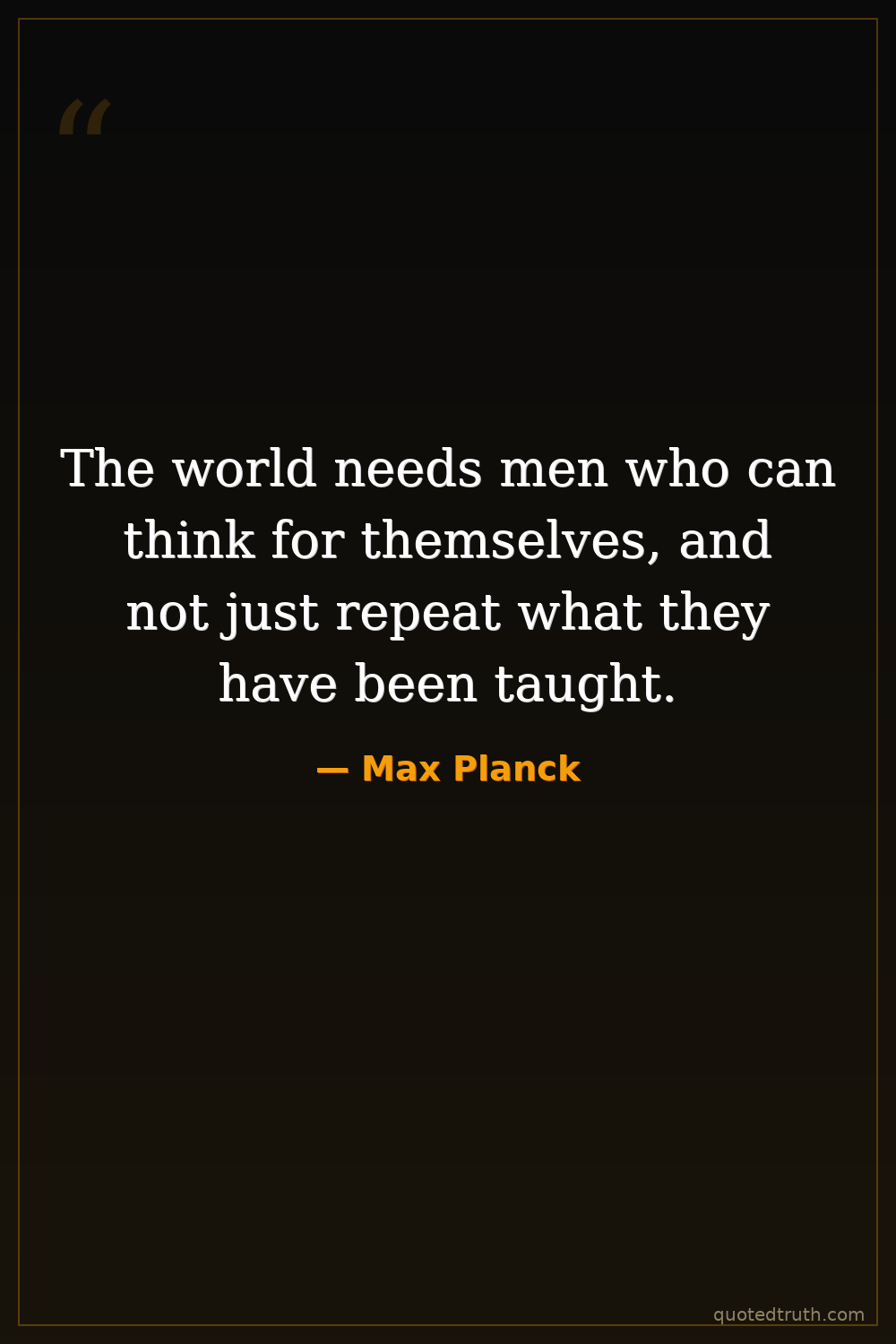The world needs men who can think for themselves, and not just repeat what they have been taught.
