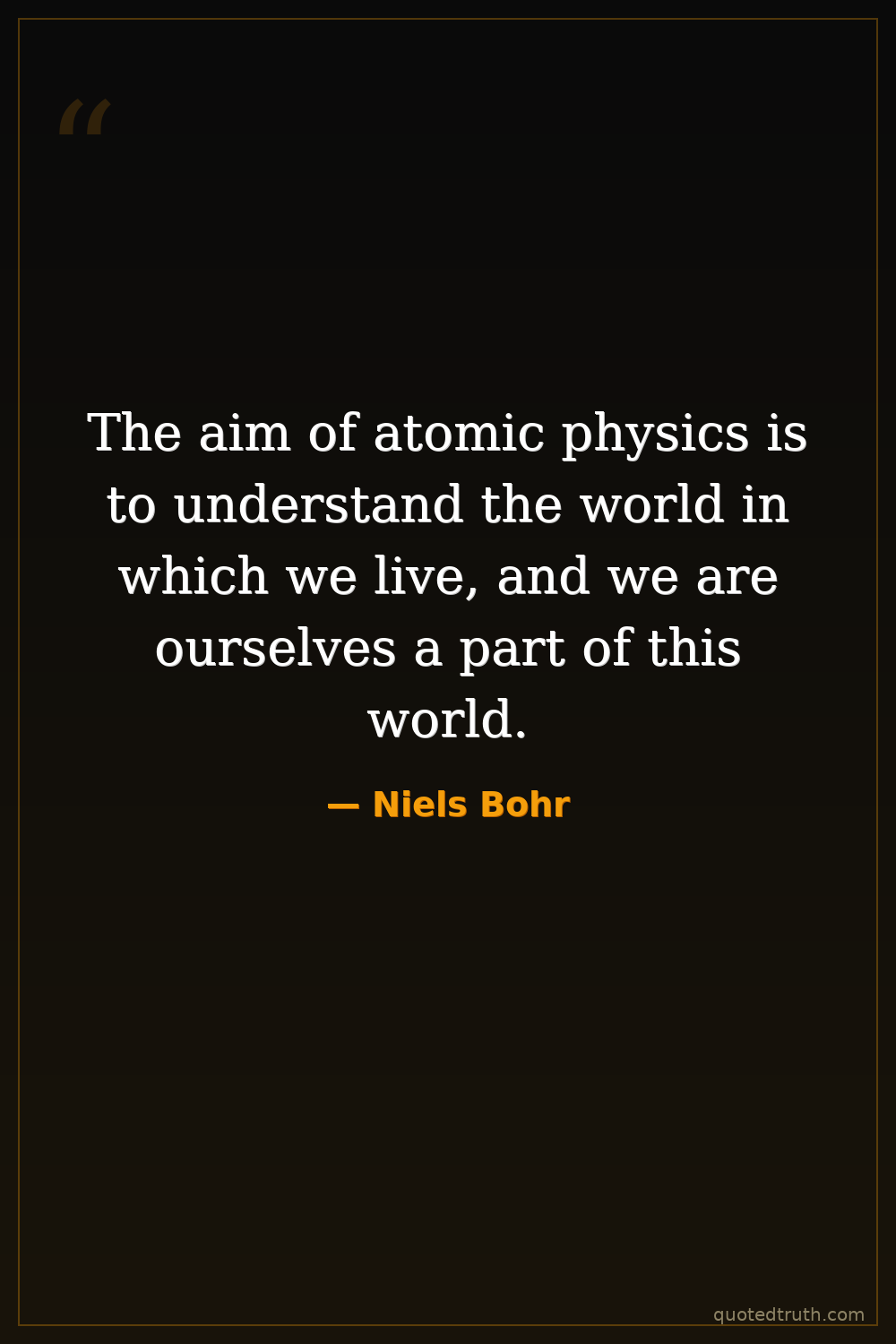 The aim of atomic physics is to understand the world in which we live, and we are ourselves a part of this world.