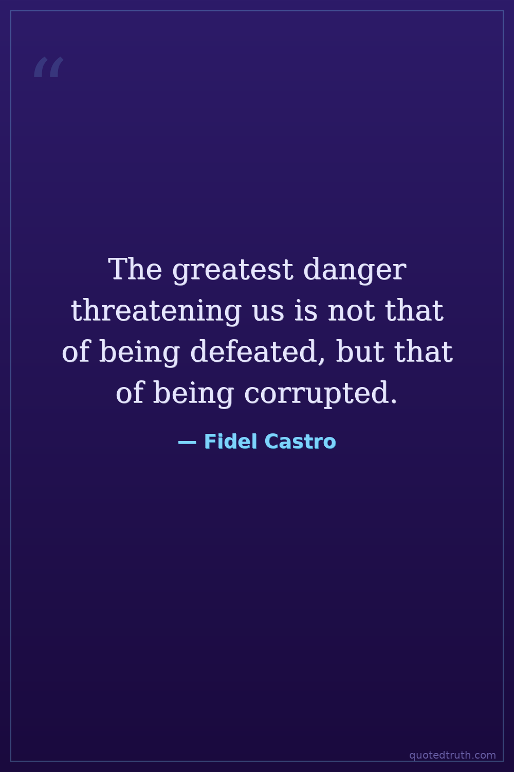 The greatest danger threatening us is not that of being defeated, but that of being corrupted.