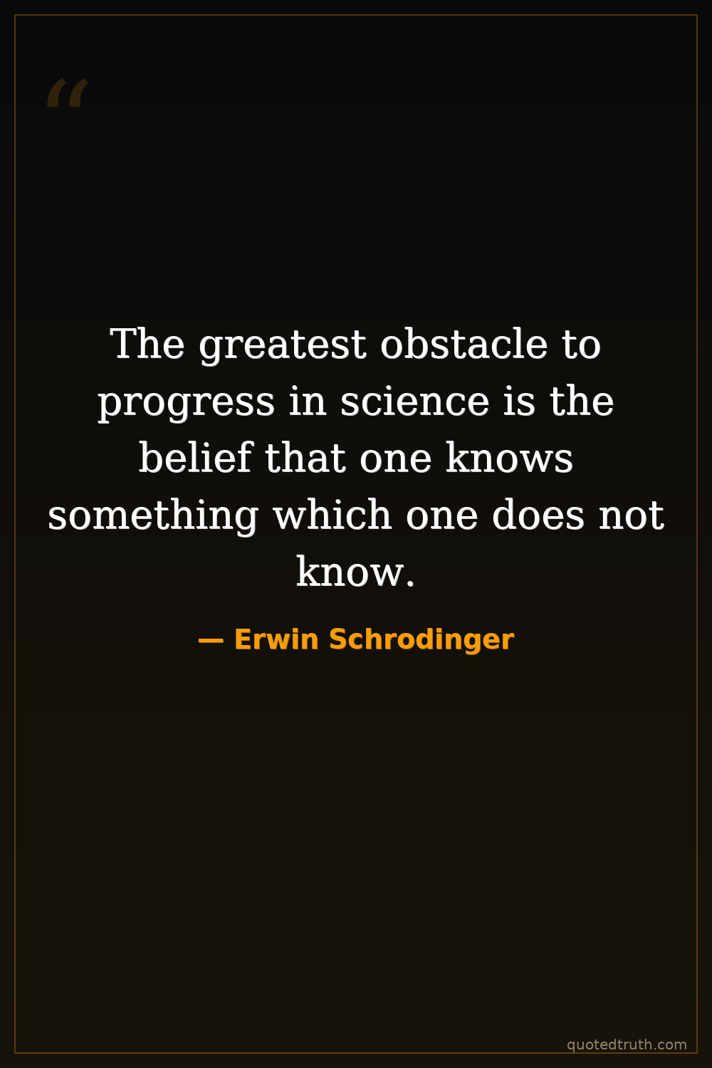 The greatest obstacle to progress in science is the belief that one knows something which one does not know.