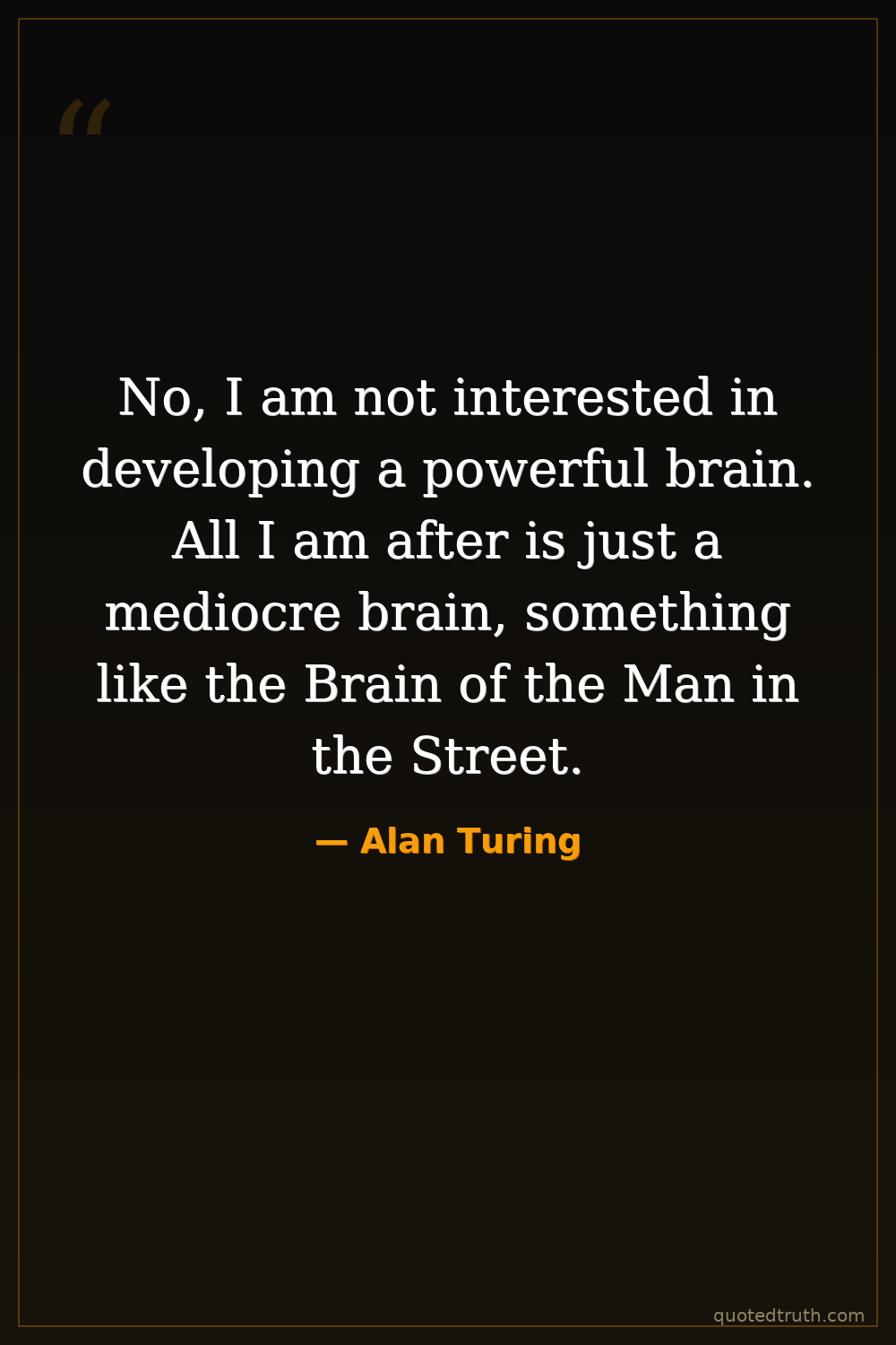 No, I am not interested in developing a powerful brain. All I am after is just a mediocre brain, something like the Brain of the Man in the Street.