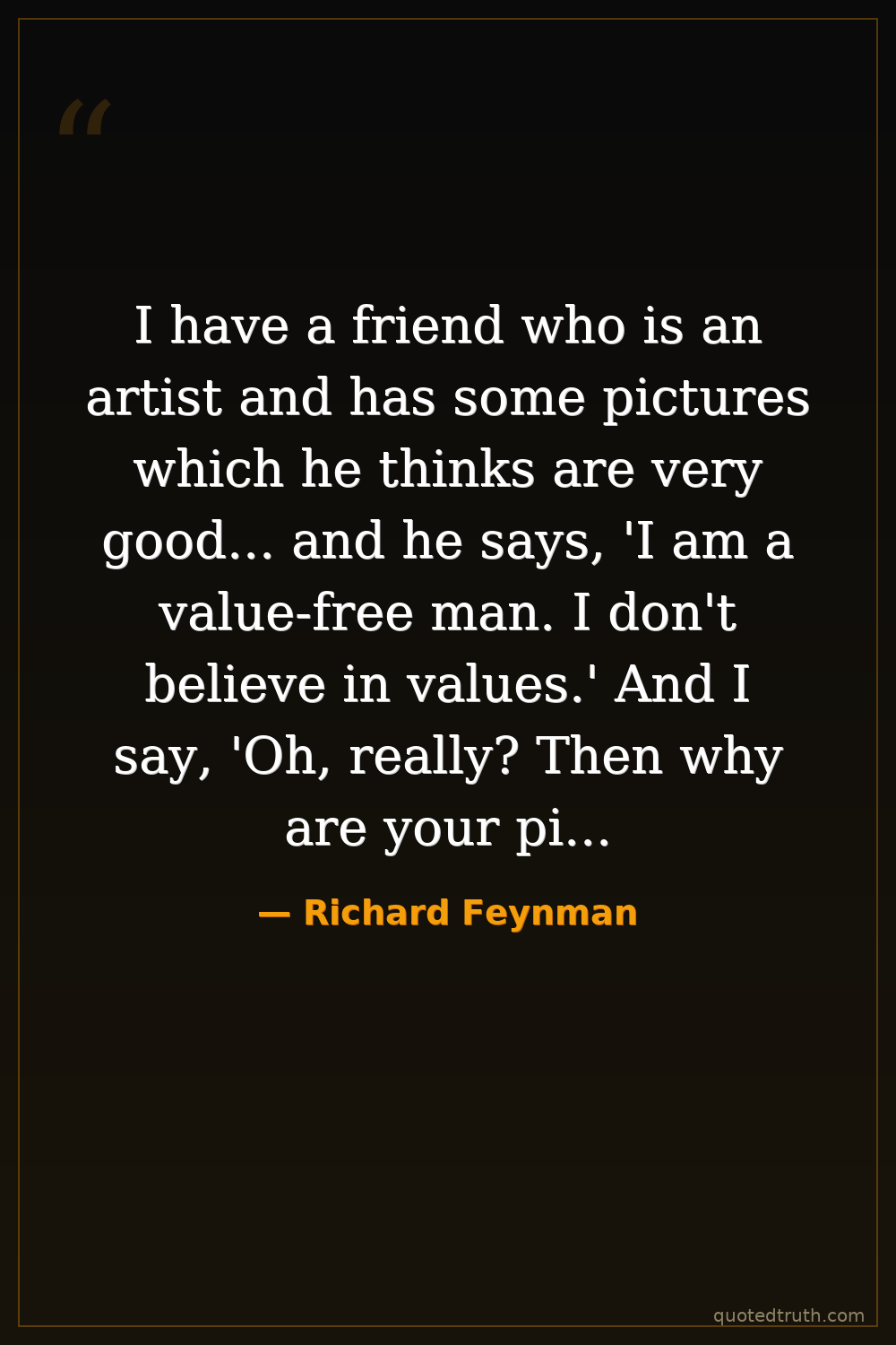 I have a friend who is an artist and has some pictures which he thinks are very good... and he says, 'I am a value-free man. I don't believe in values.' And I say, 'Oh, really? Then why are your pictures good?'