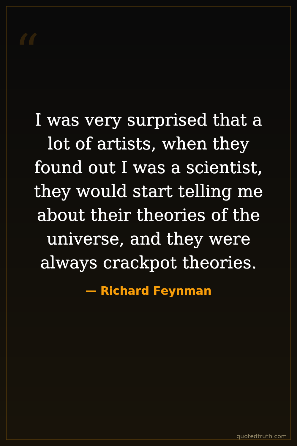 I was very surprised that a lot of artists, when they found out I was a scientist, they would start telling me about their theories of the universe, and they were always crackpot theories.
