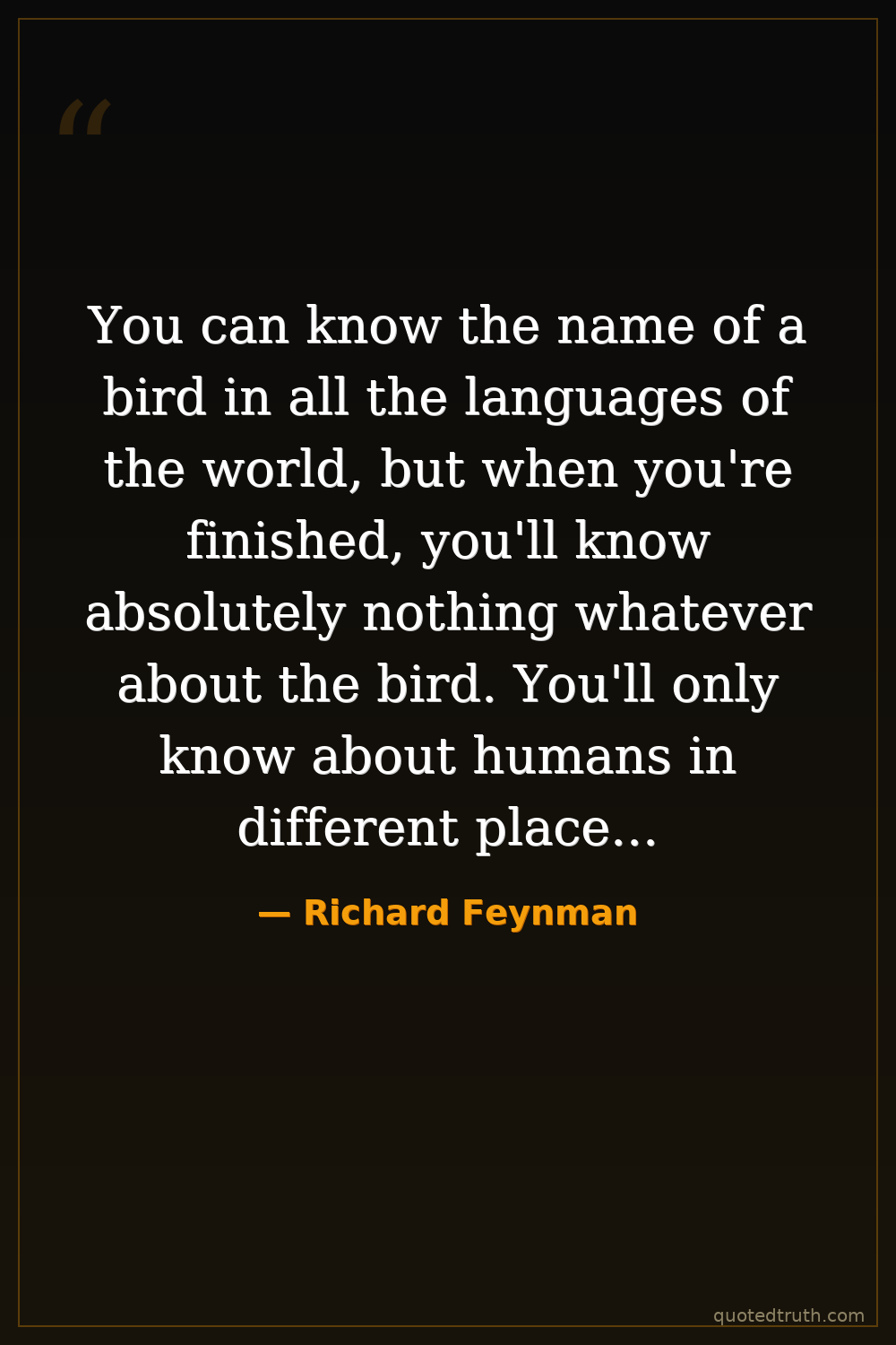 You can know the name of a bird in all the languages of the world, but when you're finished, you'll know absolutely nothing whatever about the bird. You'll only know about humans in different places and what they call the bird. So let's look at the bird and see what it's doing—that's what counts.