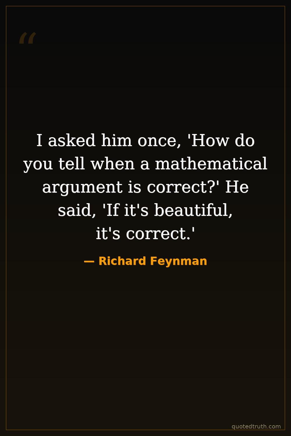 I asked him once, 'How do you tell when a mathematical argument is correct?' He said, 'If it's beautiful, it's correct.'