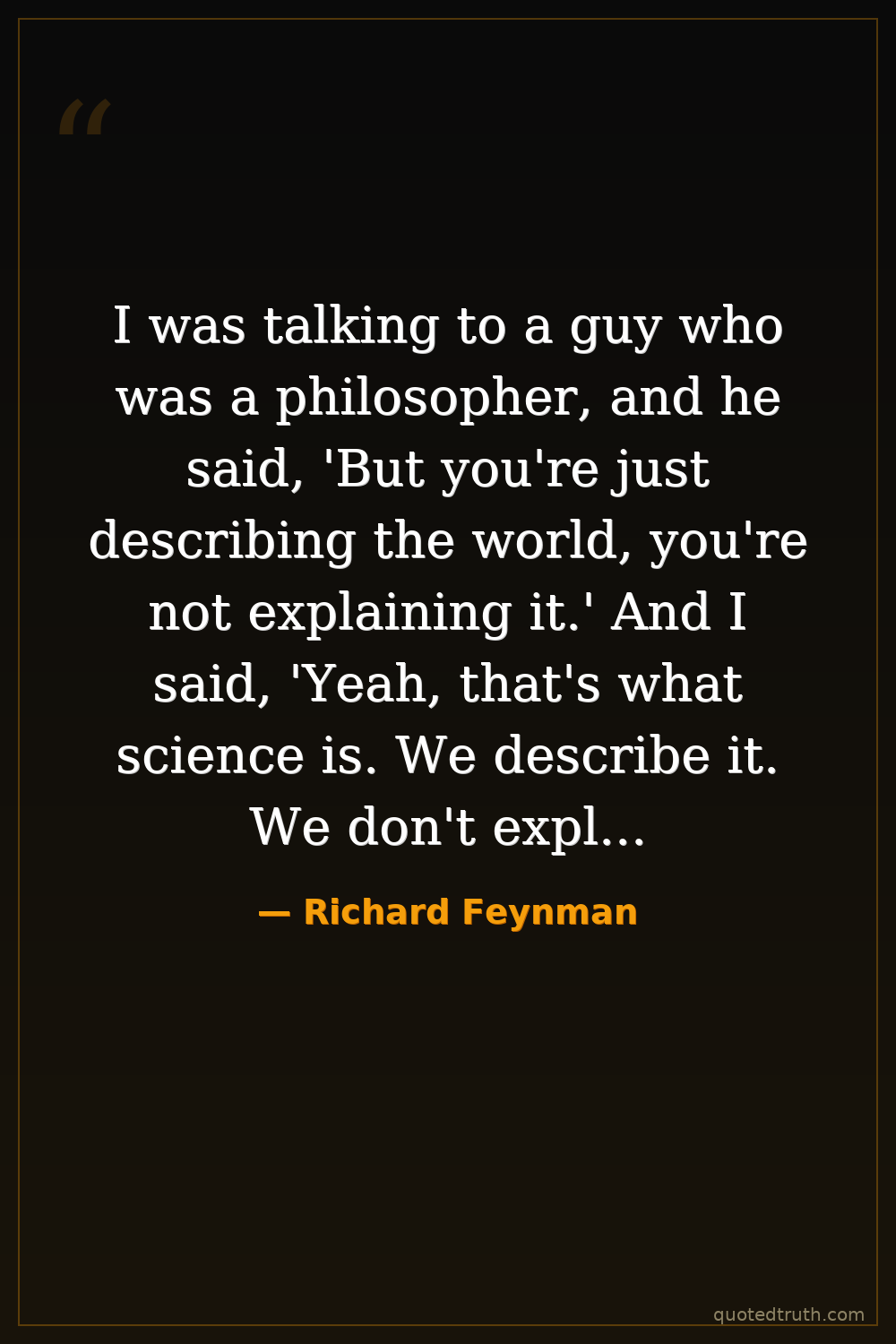 I was talking to a guy who was a philosopher, and he said, 'But you're just describing the world, you're not explaining it.' And I said, 'Yeah, that's what science is. We describe it. We don't explain it.'