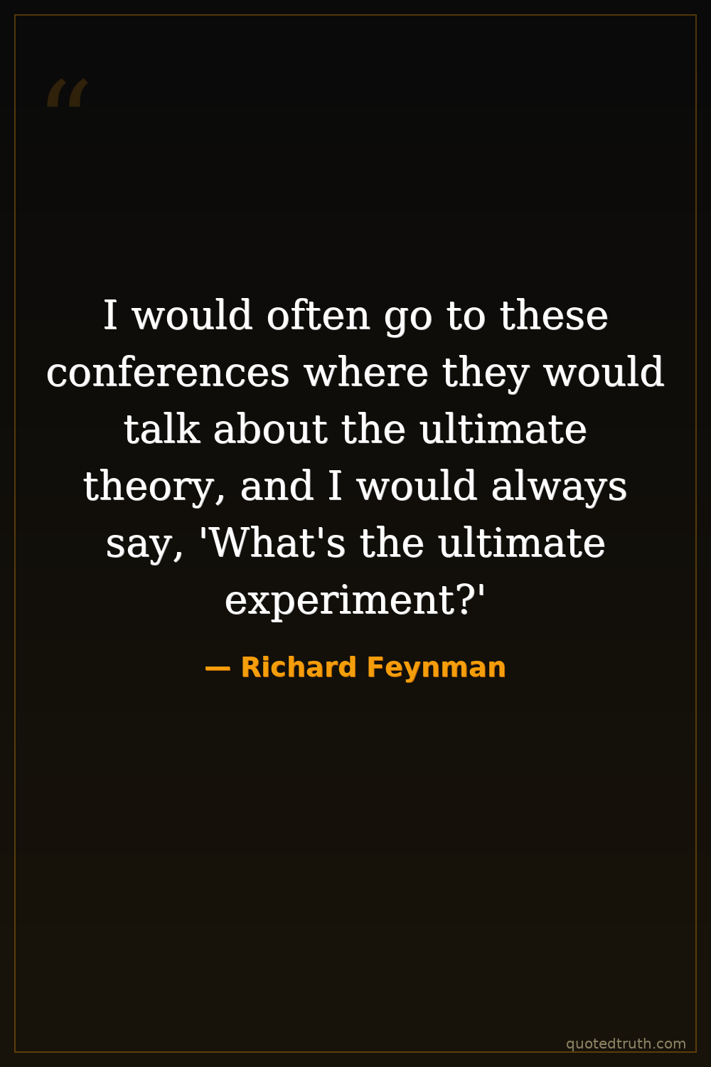 I would often go to these conferences where they would talk about the ultimate theory, and I would always say, 'What's the ultimate experiment?'