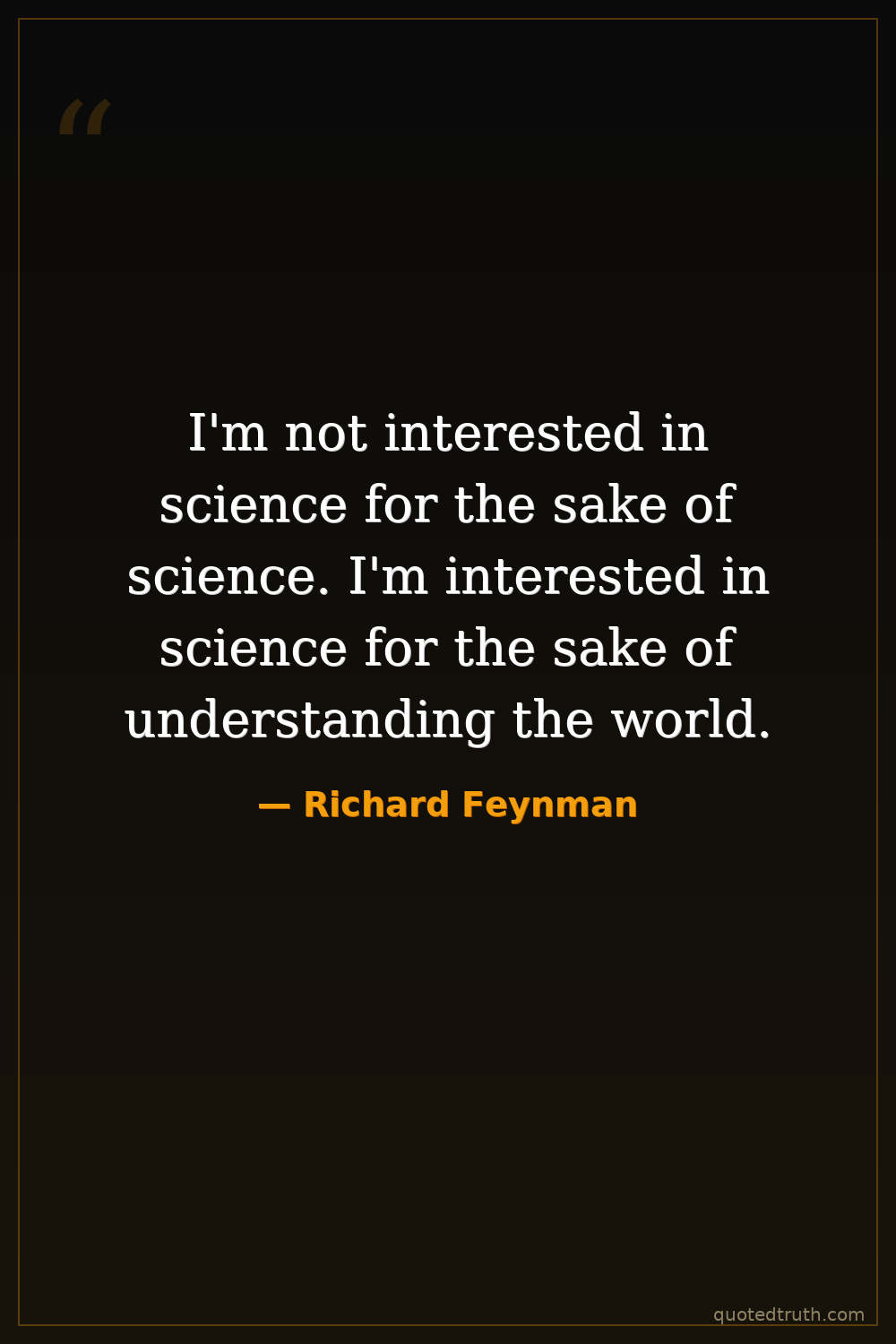 I'm not interested in science for the sake of science. I'm interested in science for the sake of understanding the world.