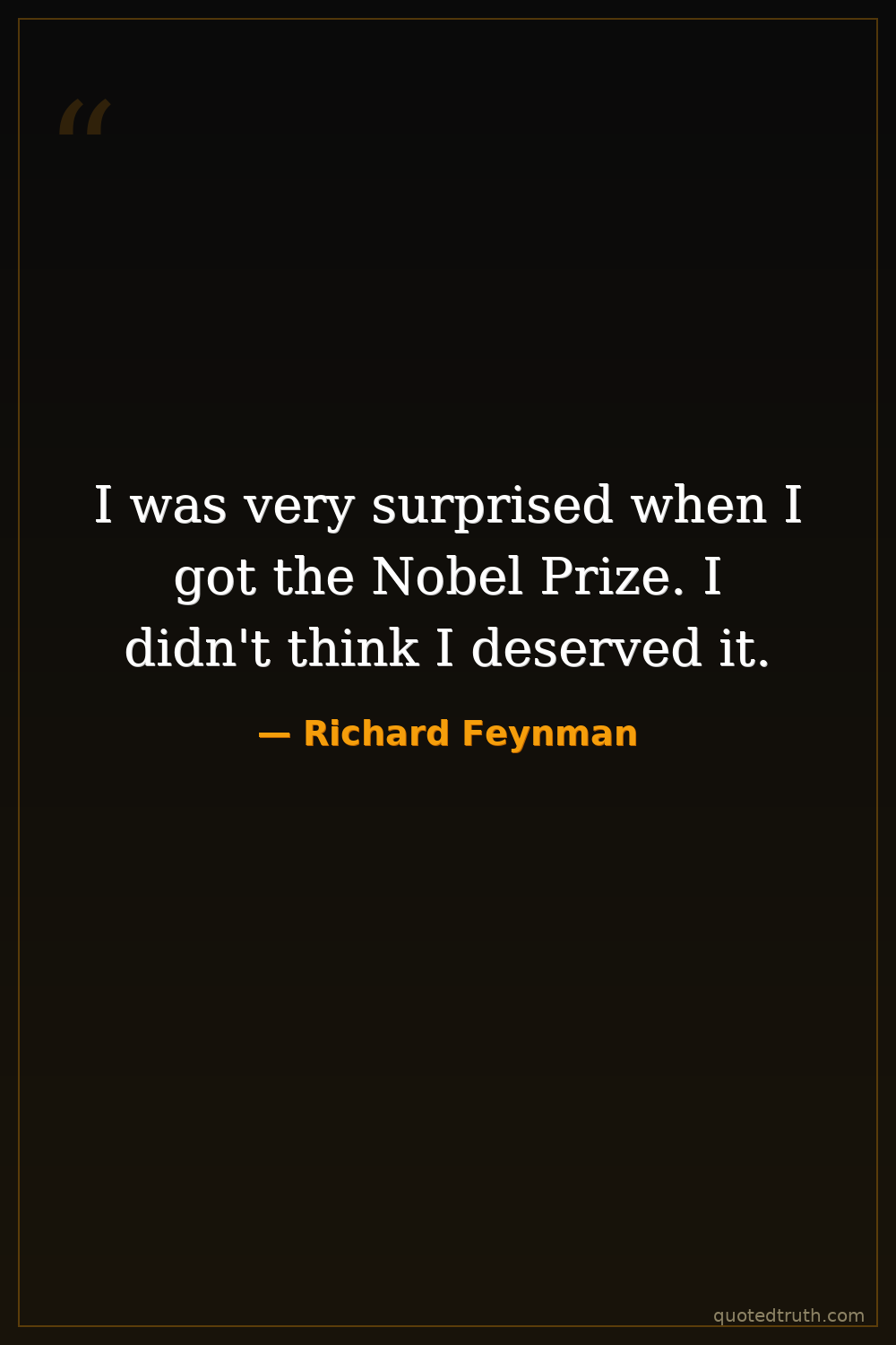 I was very surprised when I got the Nobel Prize. I didn't think I deserved it.