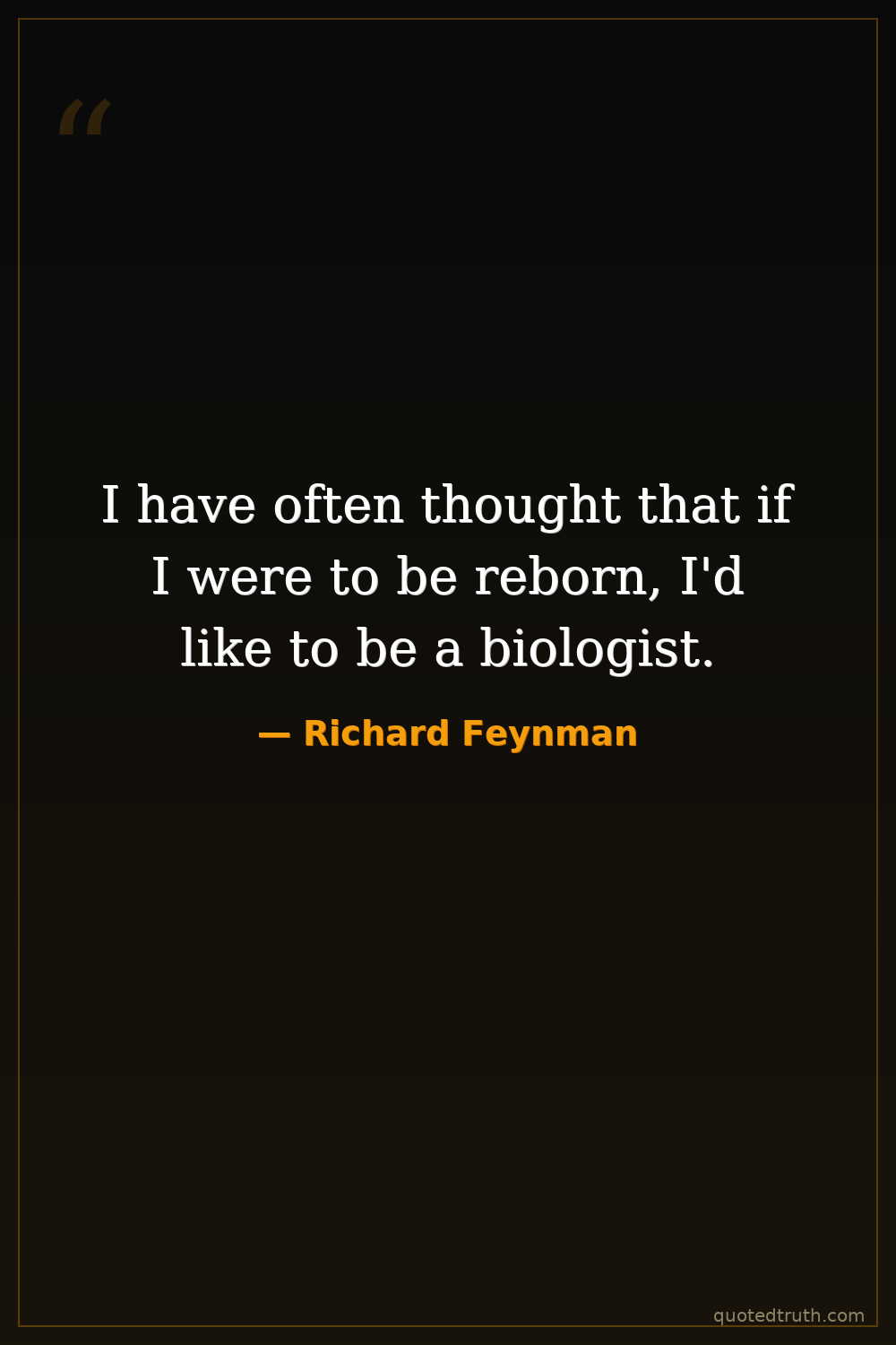 I have often thought that if I were to be reborn, I'd like to be a biologist.