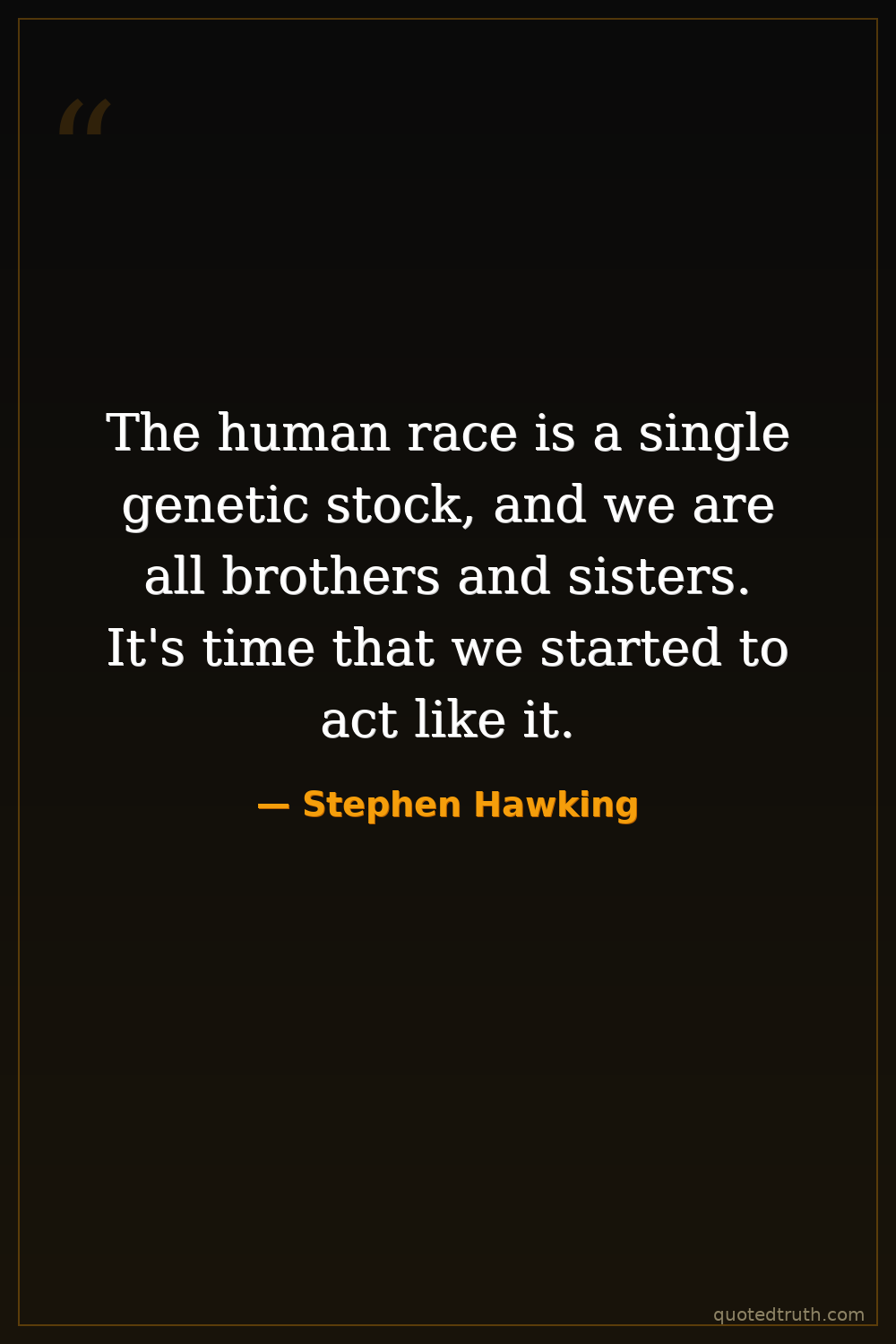 The human race is a single genetic stock, and we are all brothers and sisters. It's time that we started to act like it.