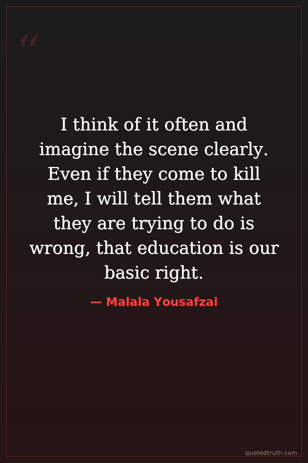 I think of it often and imagine the scene clearly. Even if they come to kill me, I will tell them what they are trying to do is wrong, that education is our basic right.