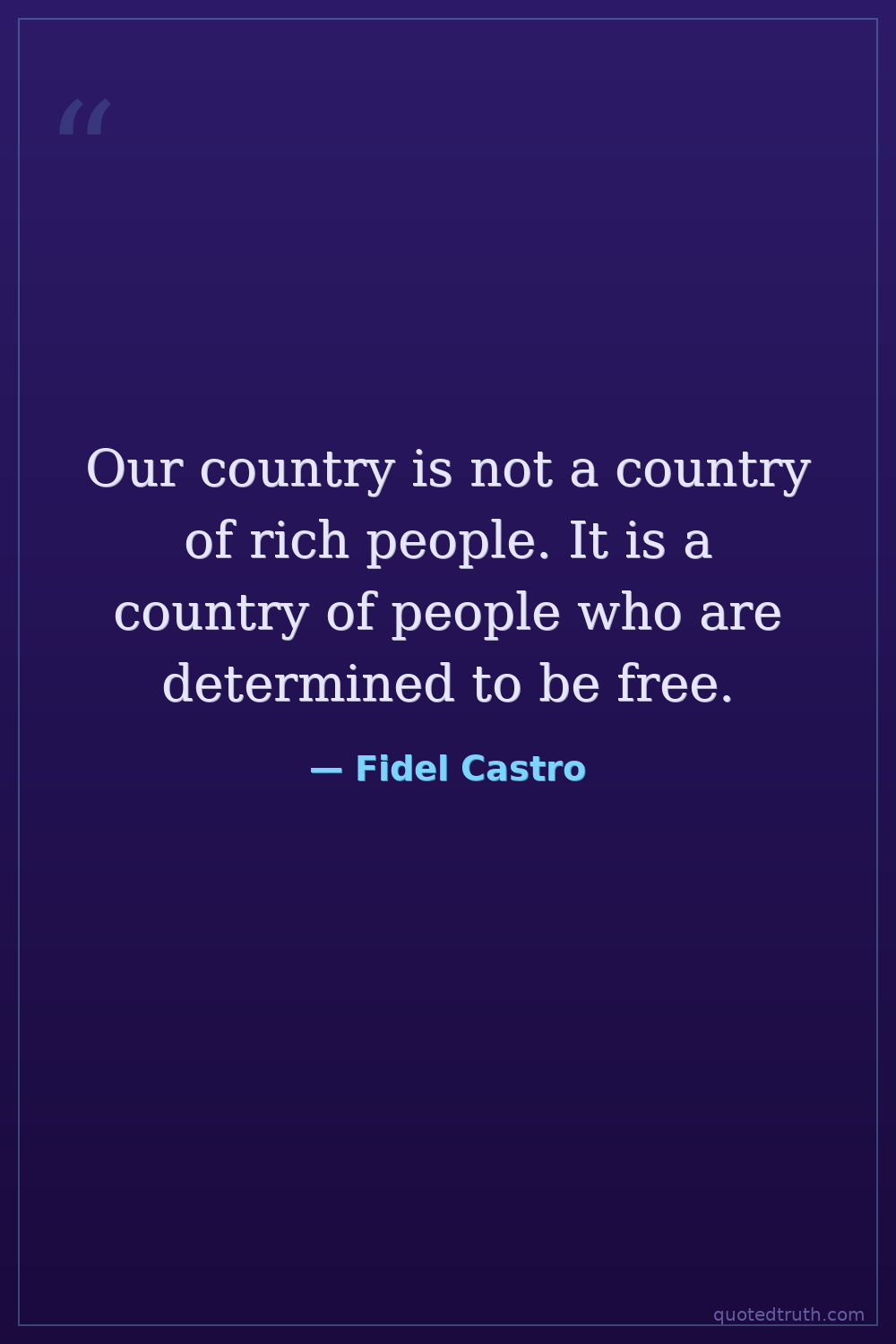 Our country is not a country of rich people. It is a country of people who are determined to be free.