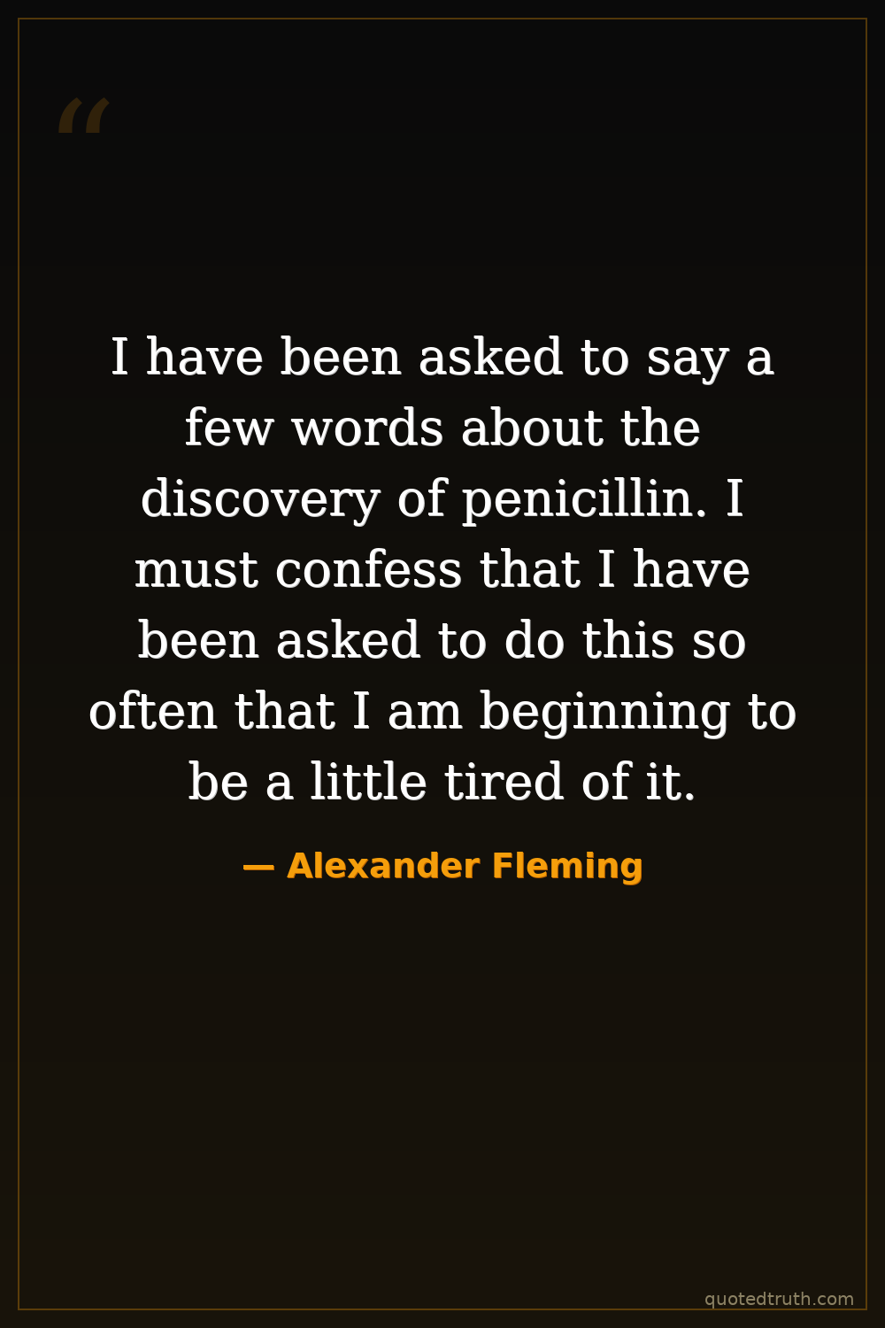 I have been asked to say a few words about the discovery of penicillin. I must confess that I have been asked to do this so often that I am beginning to be a little tired of it.