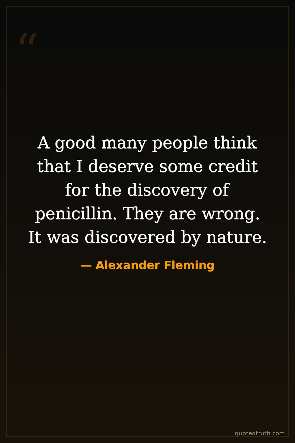 A good many people think that I deserve some credit for the discovery of penicillin. They are wrong. It was discovered by nature.