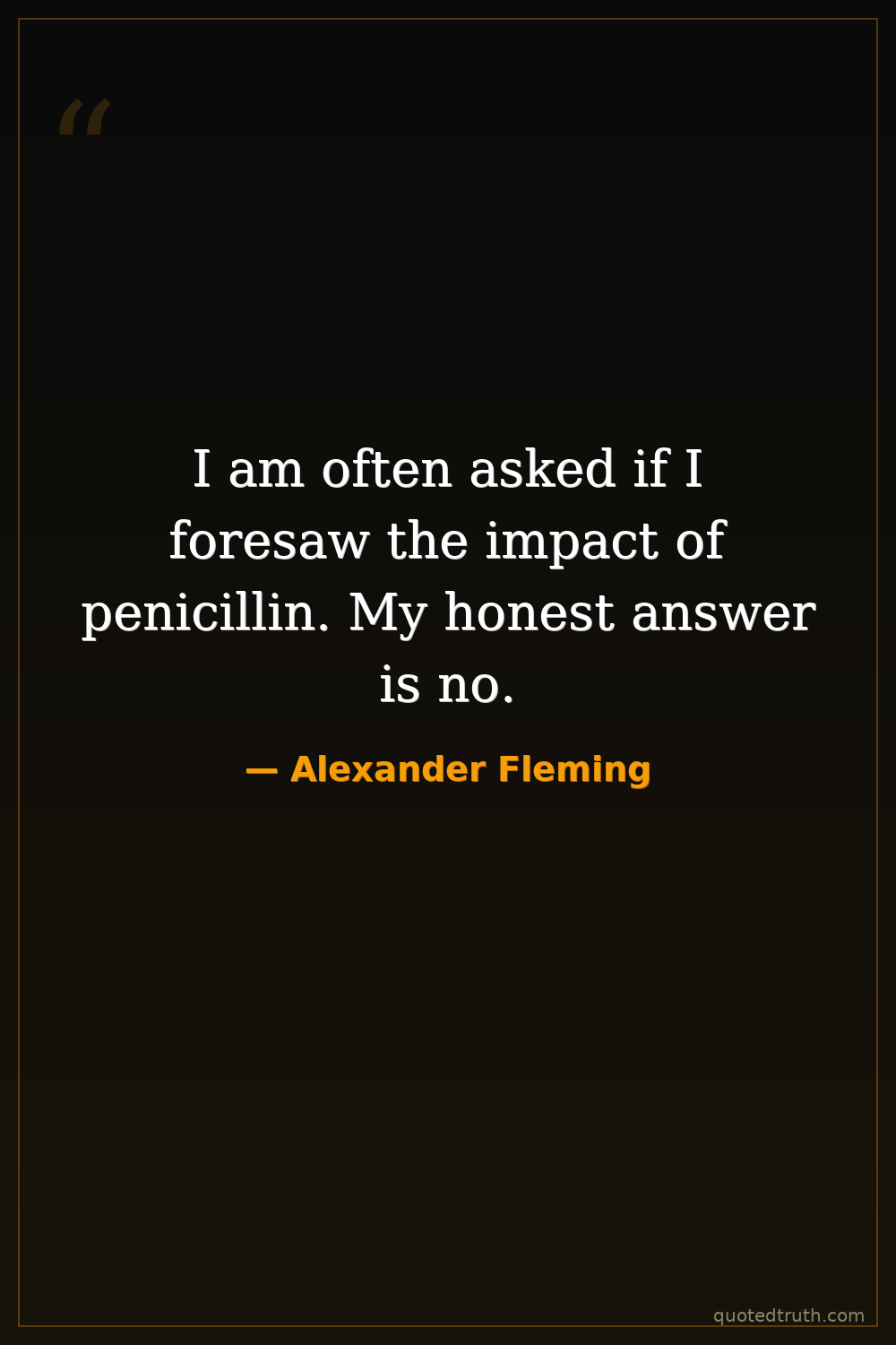 I am often asked if I foresaw the impact of penicillin. My honest answer is no.