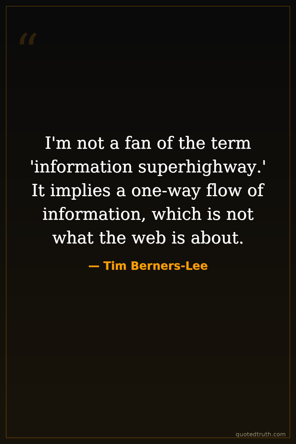 I'm not a fan of the term 'information superhighway.' It implies a one-way flow of information, which is not what the web is about.