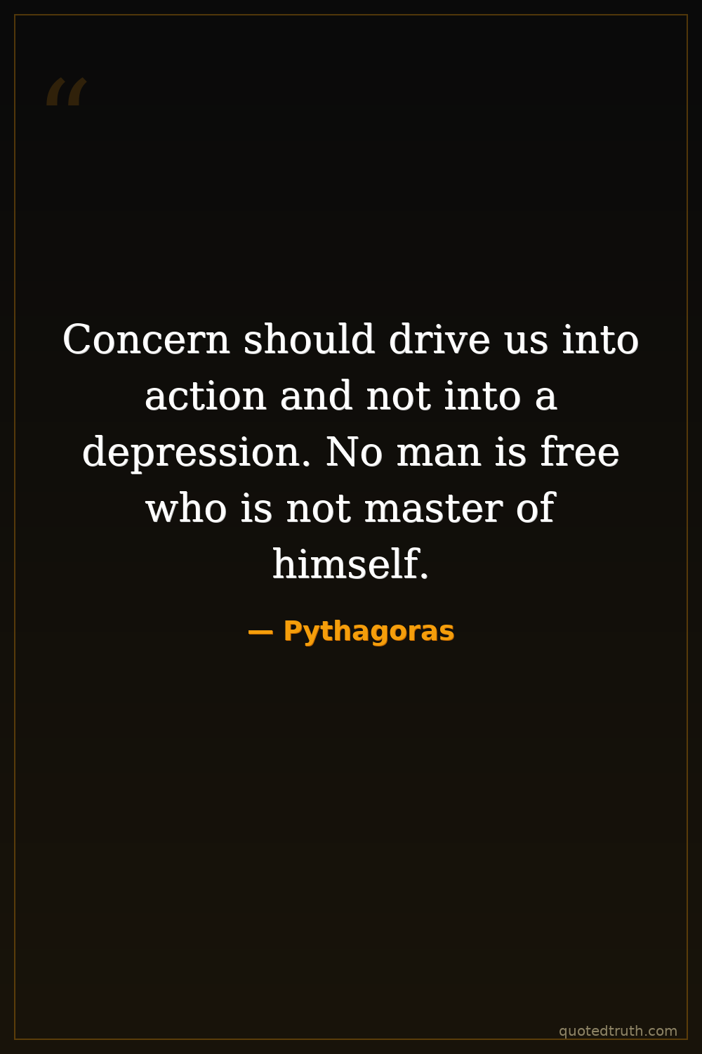 Concern should drive us into action and not into a depression. No man is free who is not master of himself.