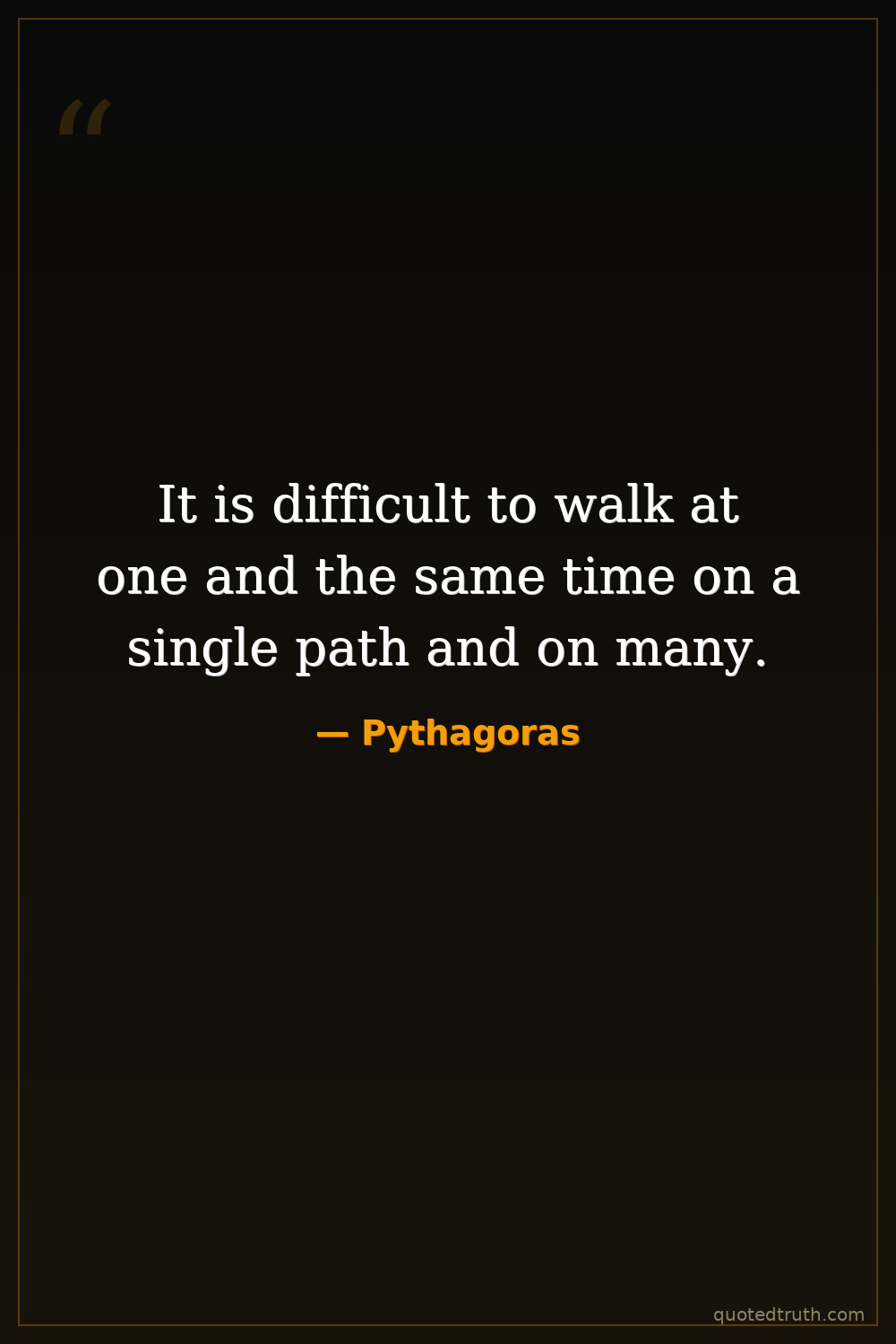 It is difficult to walk at one and the same time on a single path and on many.
