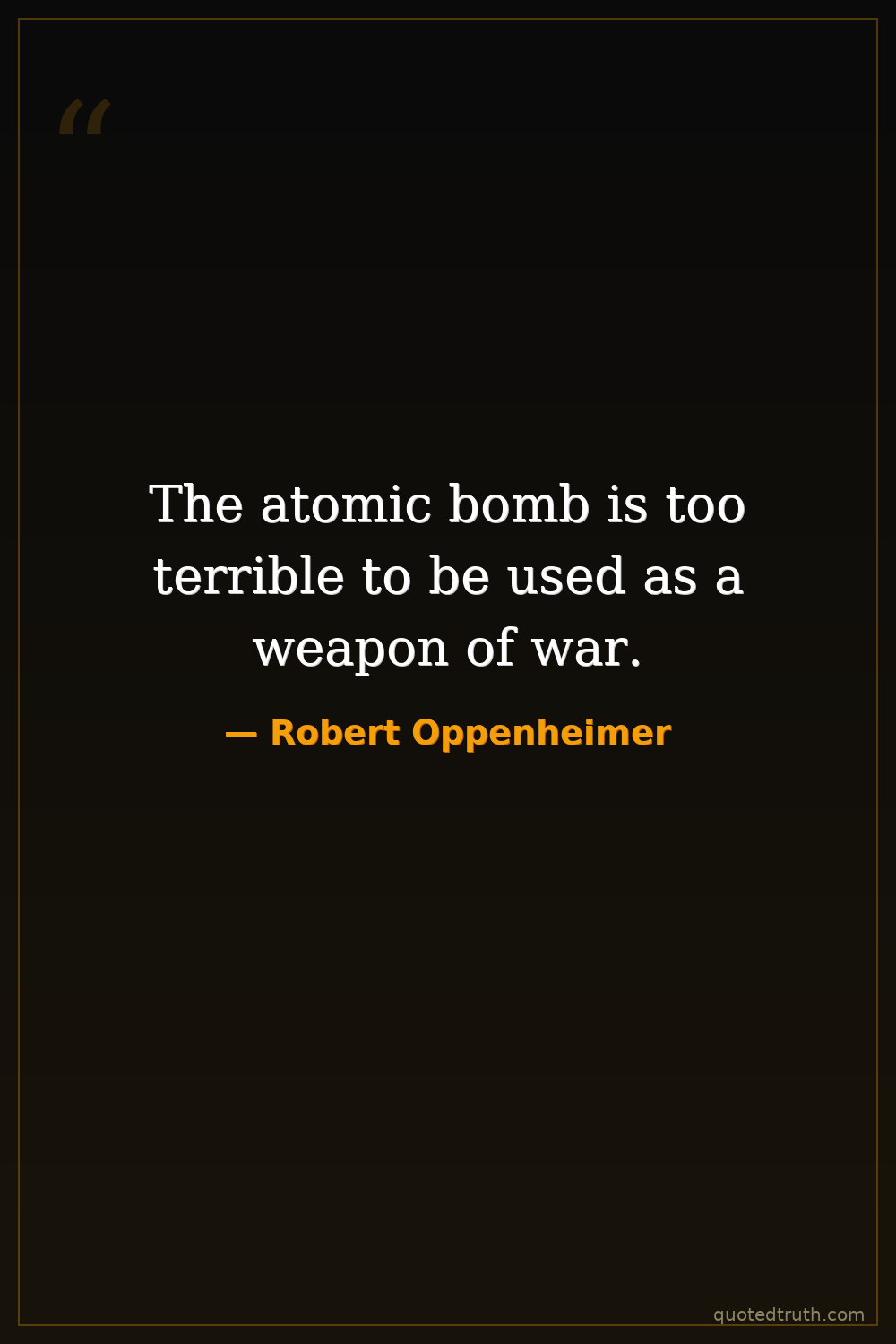 Controversial"The atomic bomb is a mirror that reflects our own humanity, both our capacity for good and our capacity for evil."