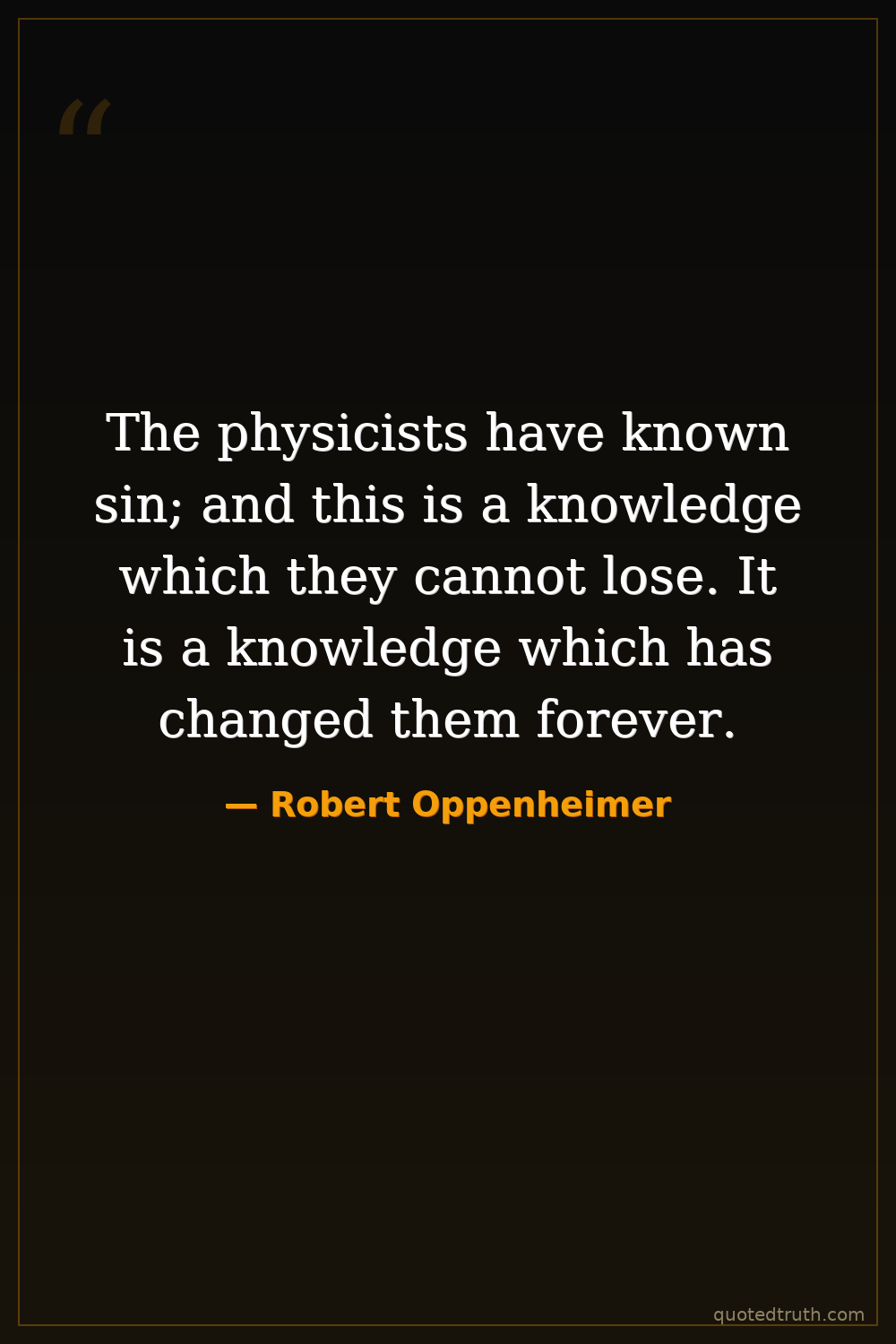 The physicists have known sin; and this is a knowledge which they cannot lose. It is a knowledge which has changed them forever.