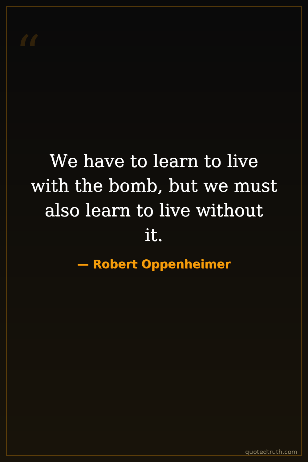 We have to learn to live with the bomb, but we must also learn to live without it.