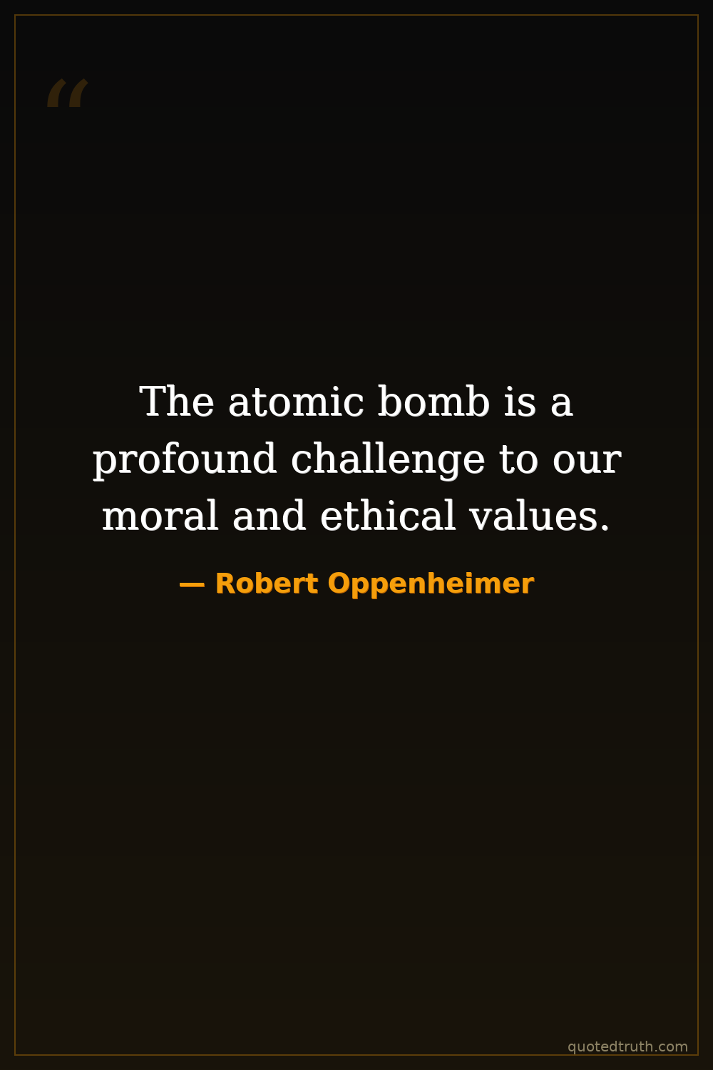 The atomic bomb is a profound challenge to our moral and ethical values.