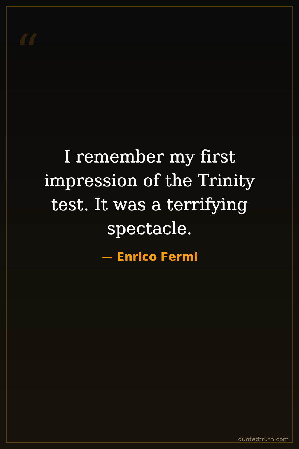 I remember my first impression of the Trinity test. It was a terrifying spectacle.