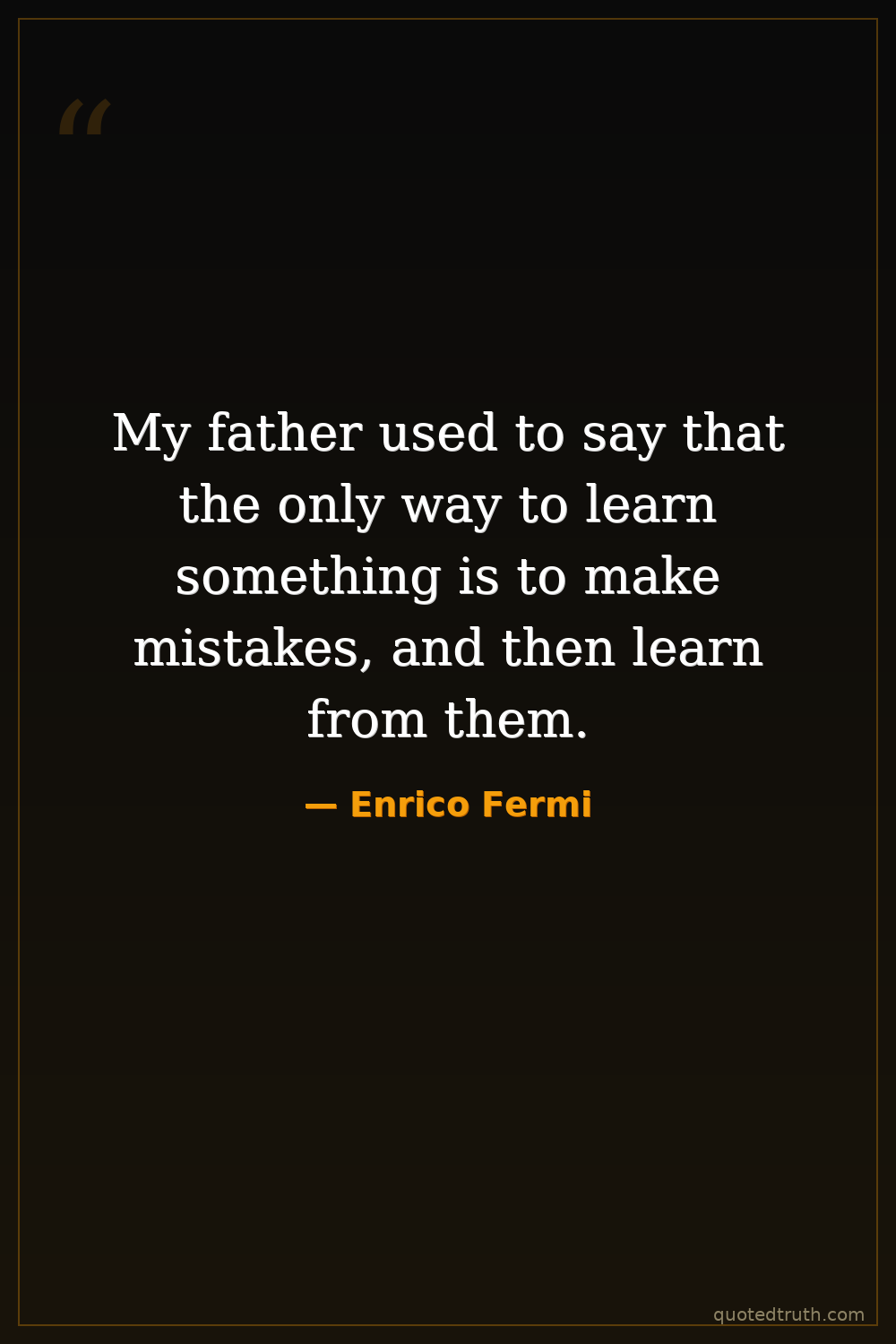 My father used to say that the only way to learn something is to make mistakes, and then learn from them.