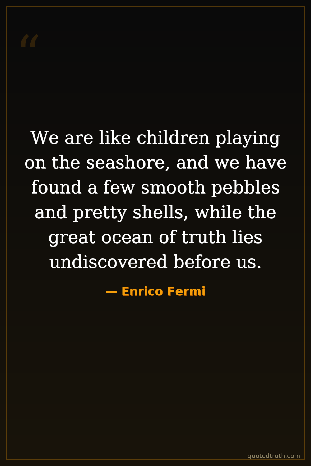 We are like children playing on the seashore, and we have found a few smooth pebbles and pretty shells, while the great ocean of truth lies undiscovered before us.