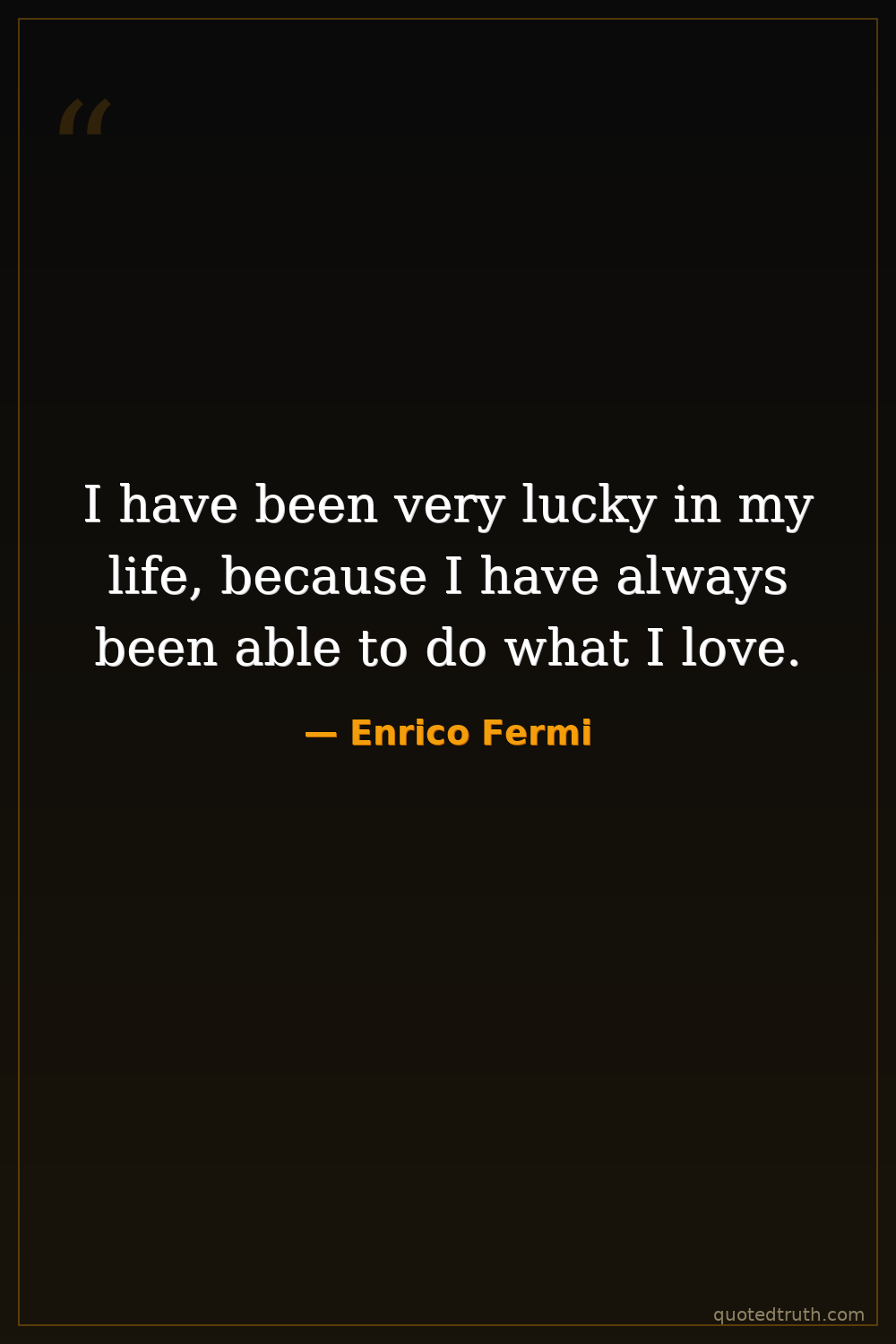 I have been very lucky in my life, because I have always been able to do what I love.