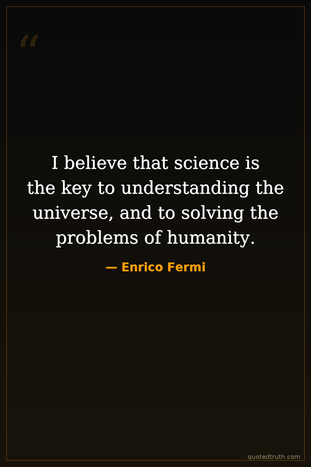 I believe that science is the key to understanding the universe, and to solving the problems of humanity.
