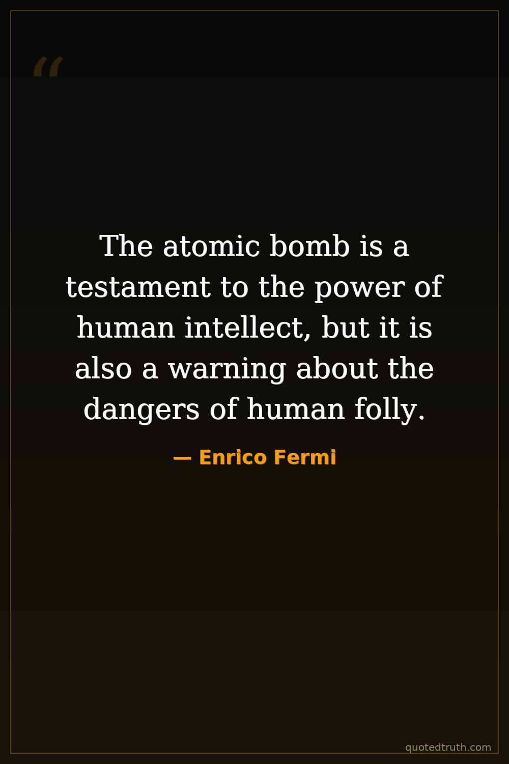 The atomic bomb is a testament to the power of human intellect, but it is also a warning about the dangers of human folly.