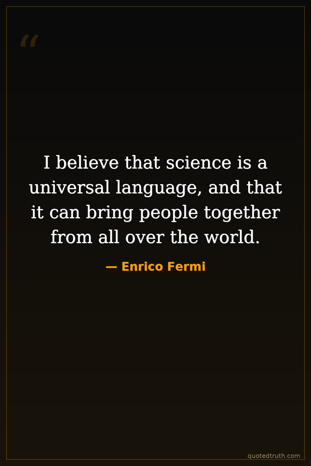 I believe that science is a universal language, and that it can bring people together from all over the world.
