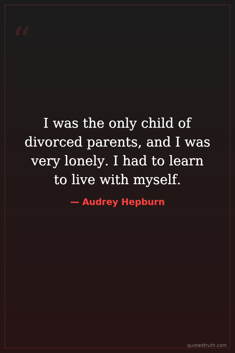 I was the only child of divorced parents, and I was very lonely. I had to learn to live with myself.