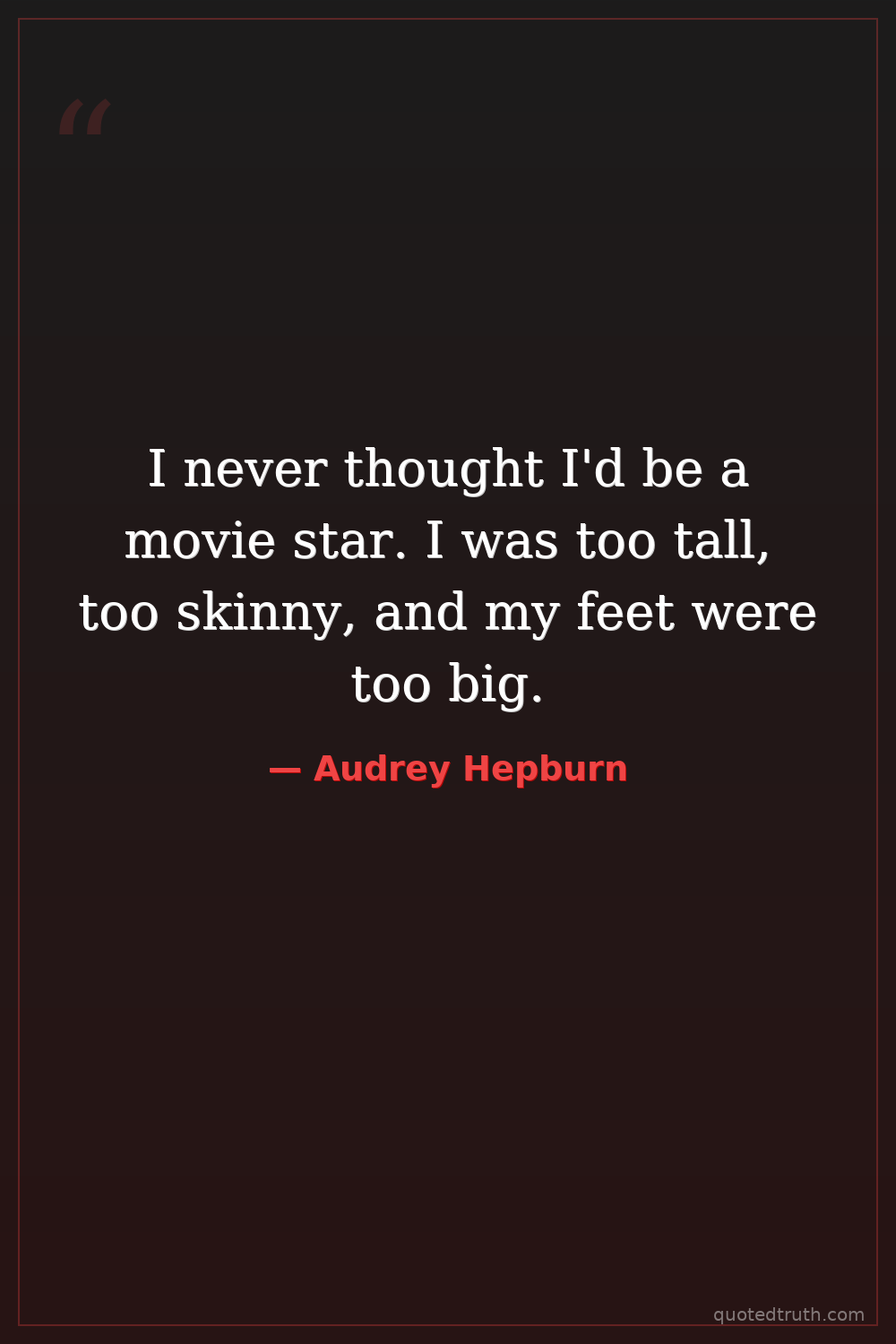 I never thought I'd be a movie star. I was too tall, too skinny, and my feet were too big.