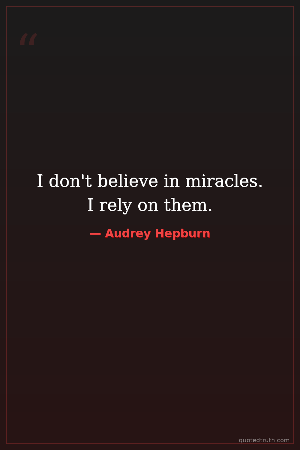 I don't believe in miracles. I rely on them.