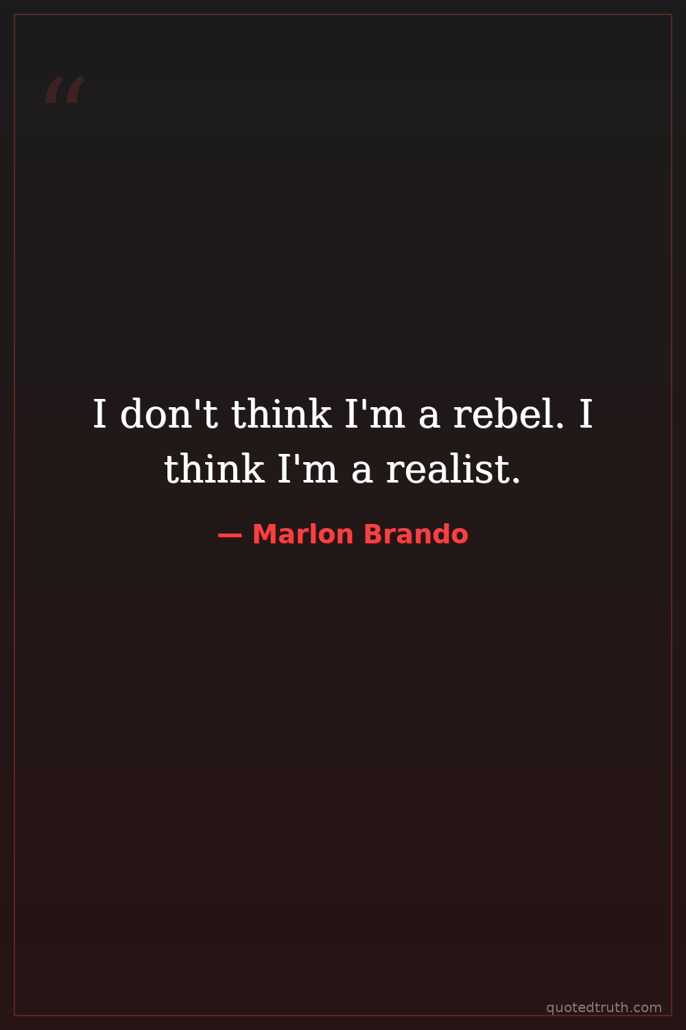I don't think I'm a rebel. I think I'm a realist.