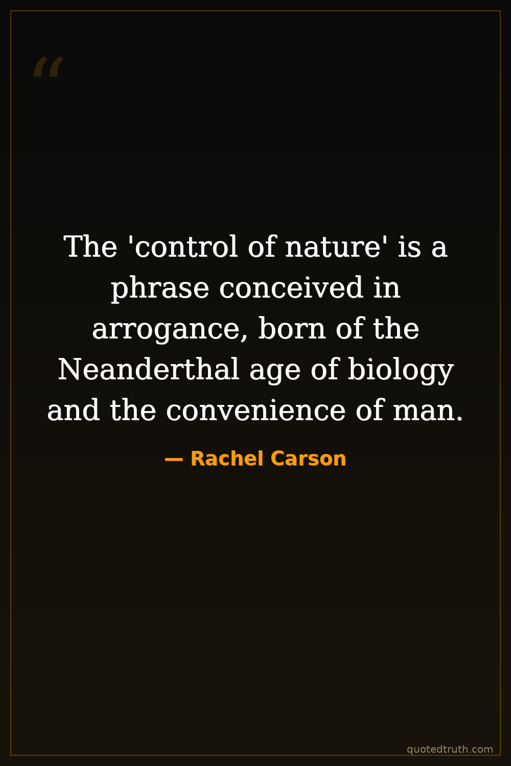 The 'control of nature' is a phrase conceived in arrogance, born of the Neanderthal age of biology and the convenience of man.